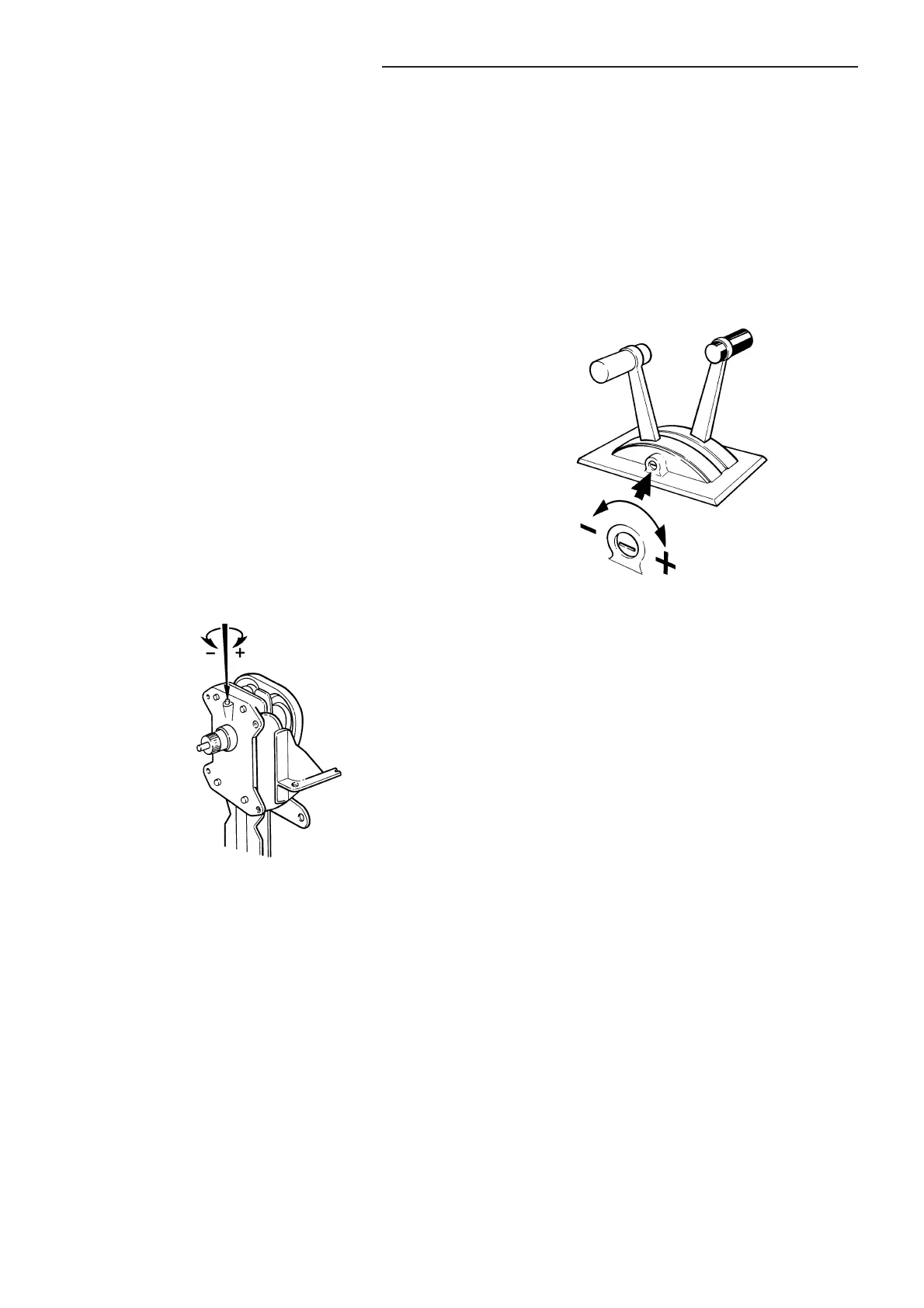 Turning the screw clockwise (+) makes the lever