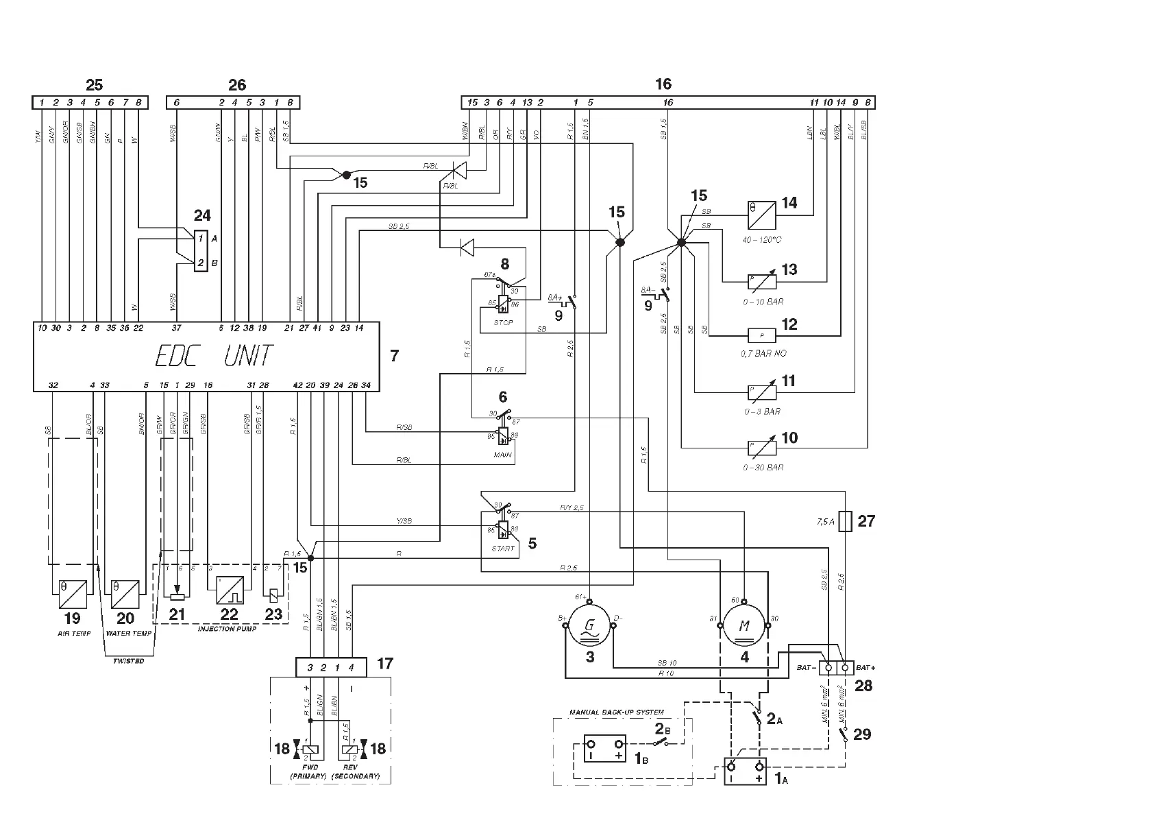 25. 16-pin connector, male (control unit)