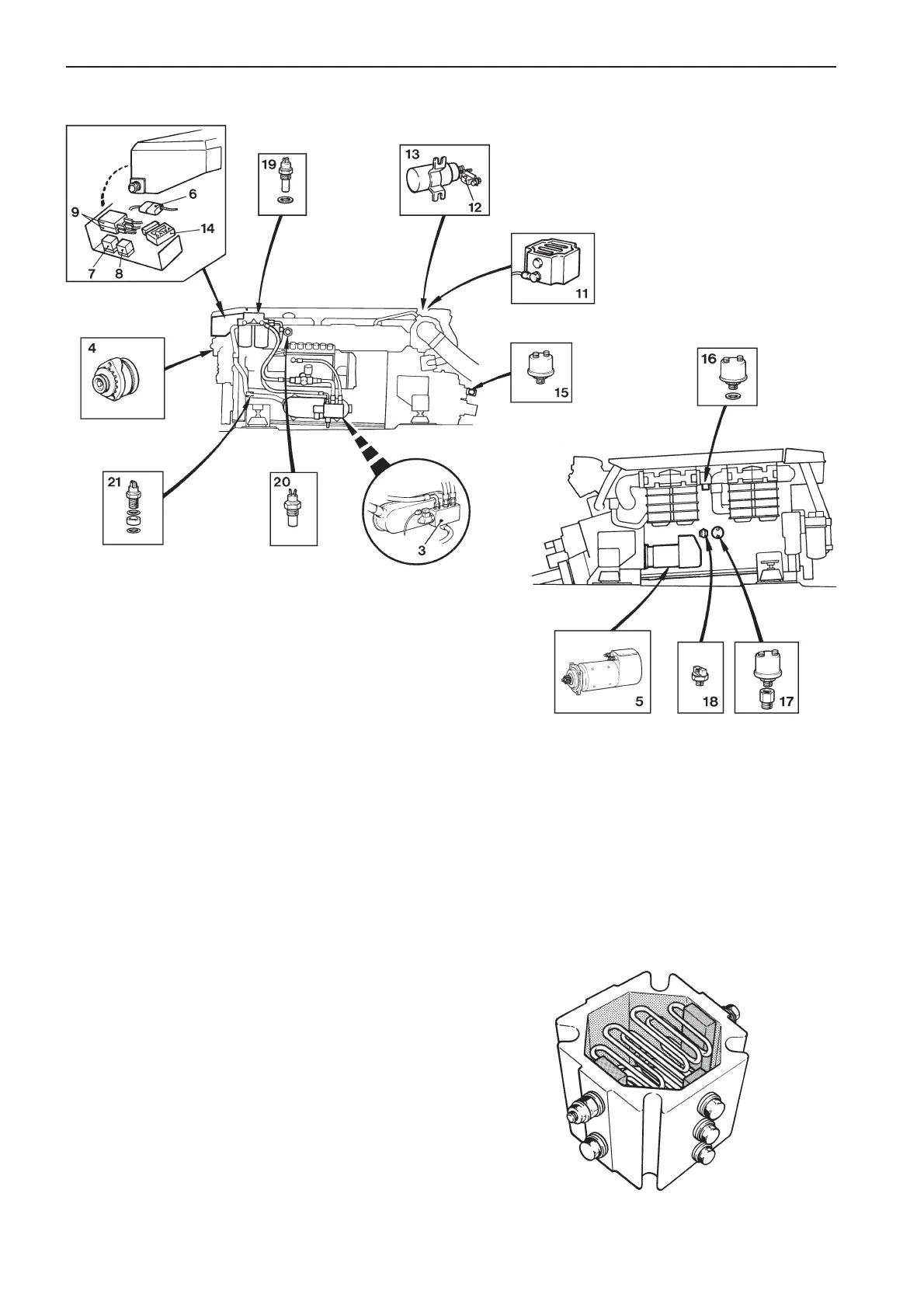 12. Fuse for starter element 21. Engine speed (rpm) sender