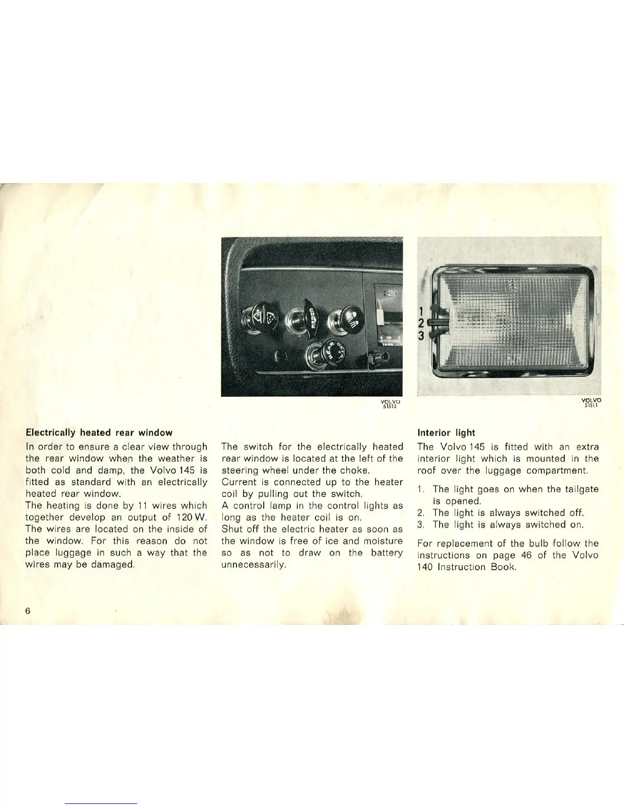 Volvo 140 - Volvo 145 Heated Rear Window; Interior Light