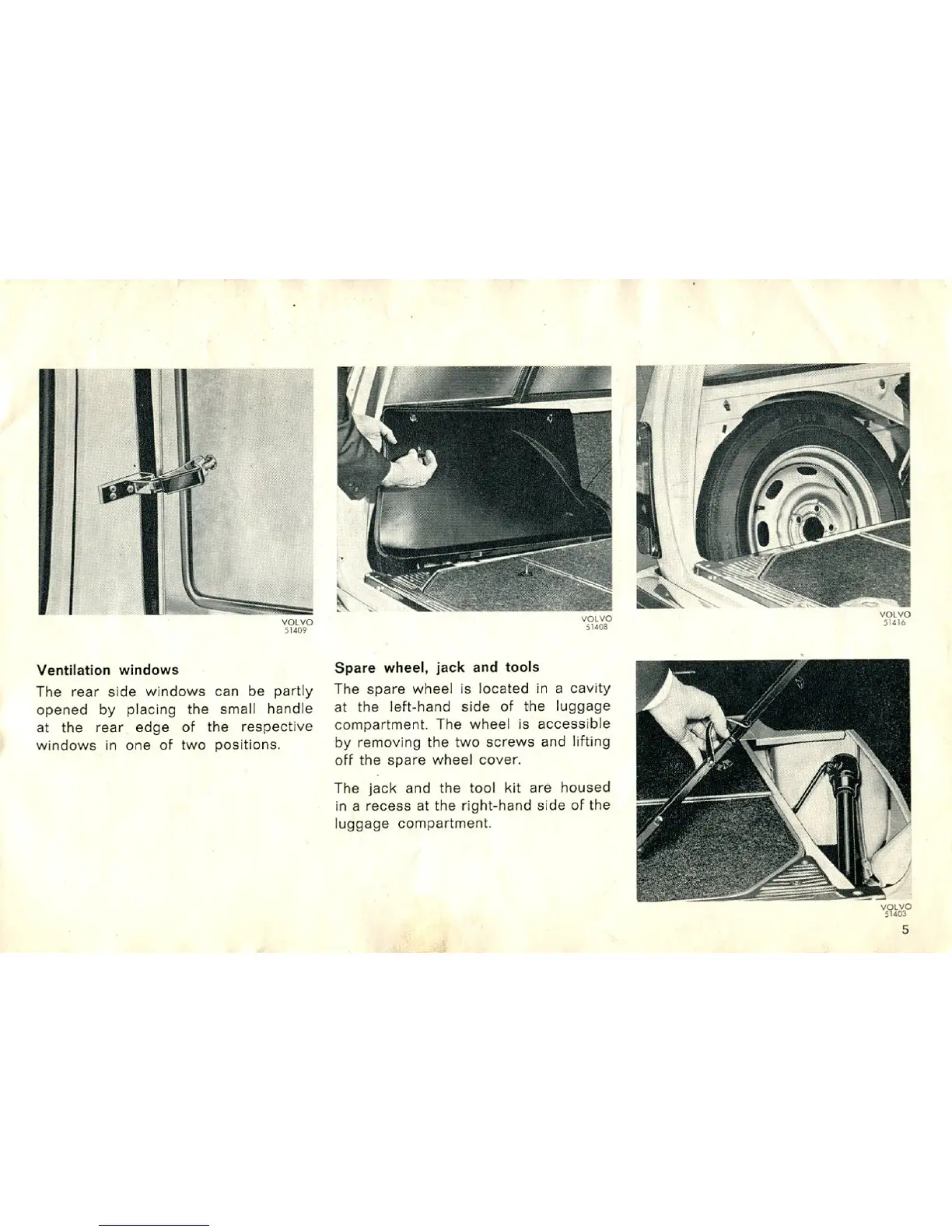 Volvo 145 - Convenience and Safety Features; Ventilation Windows; Spare Wheel, Jack, and Tools