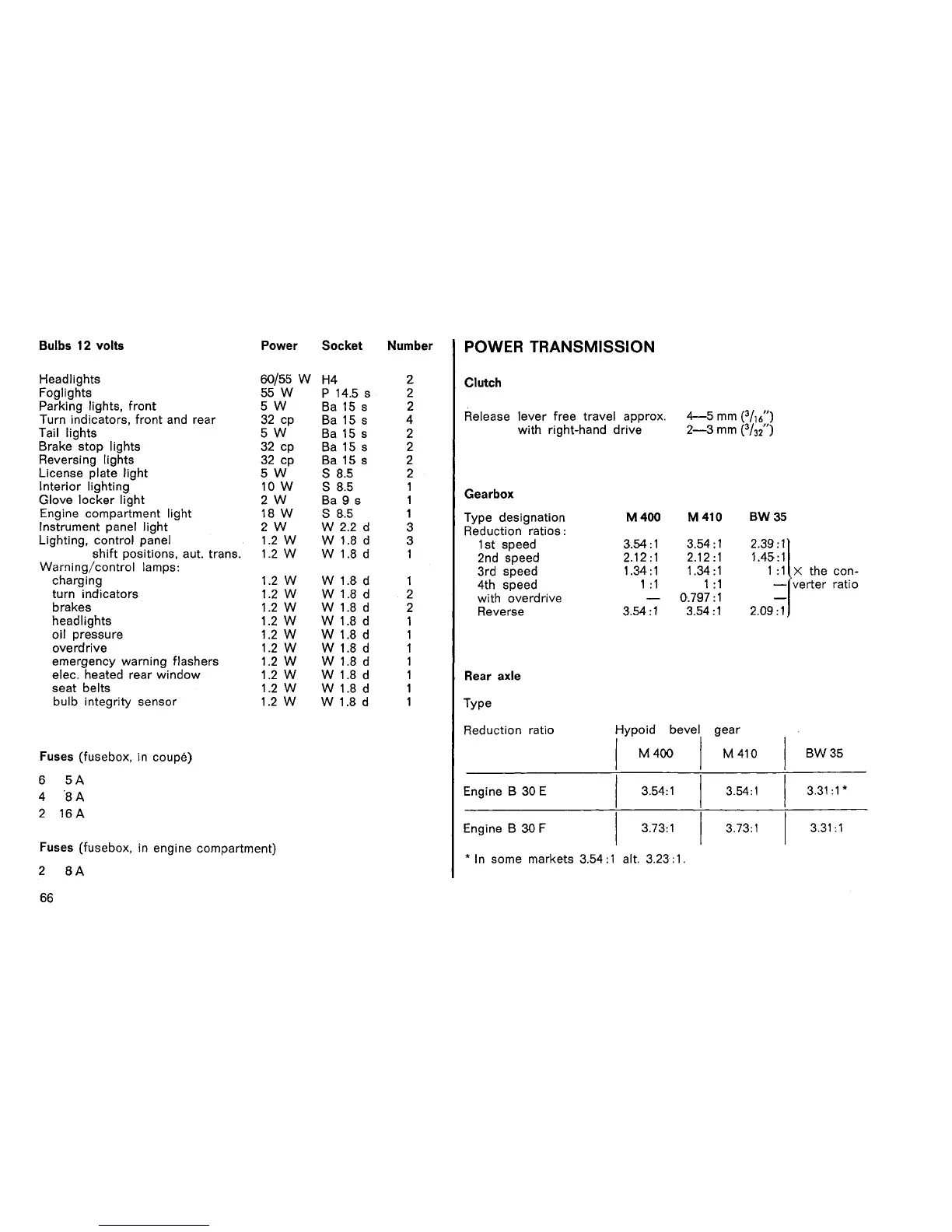 Volvo 164 - Transmission, Axle Ratios, and Capacities