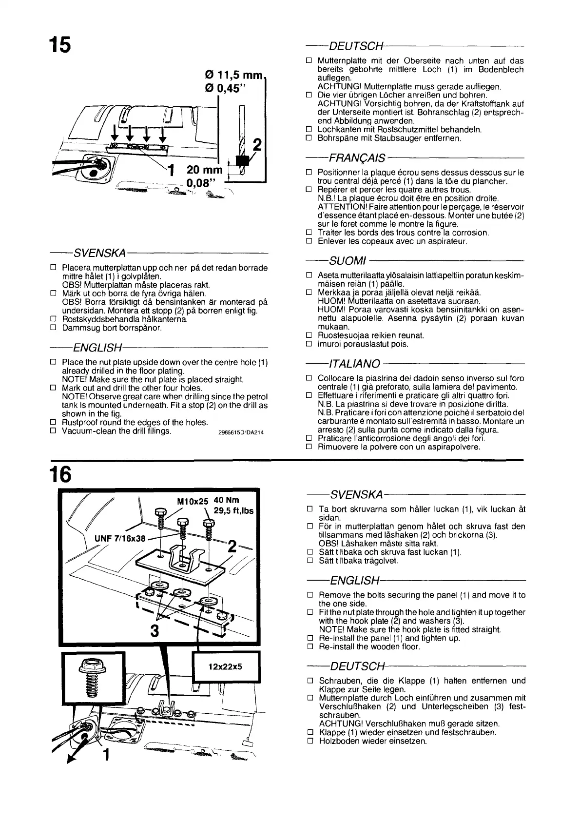 ACHTUNG! Vorsichtig bohren, da der Kraftstofftank auf