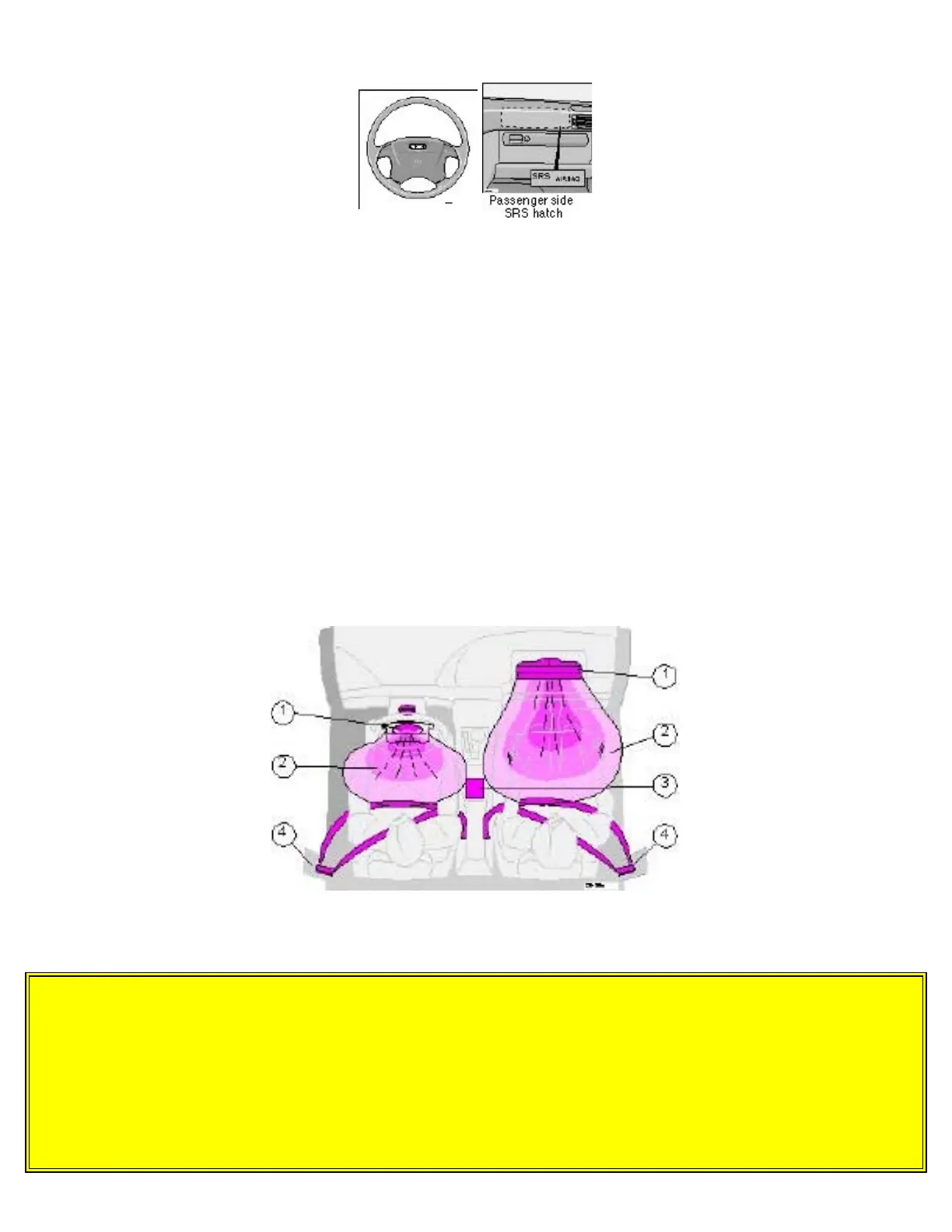 The SRS system is indicated by the "SRS" embossed on the steering wheel pad and above the glove compartment, and