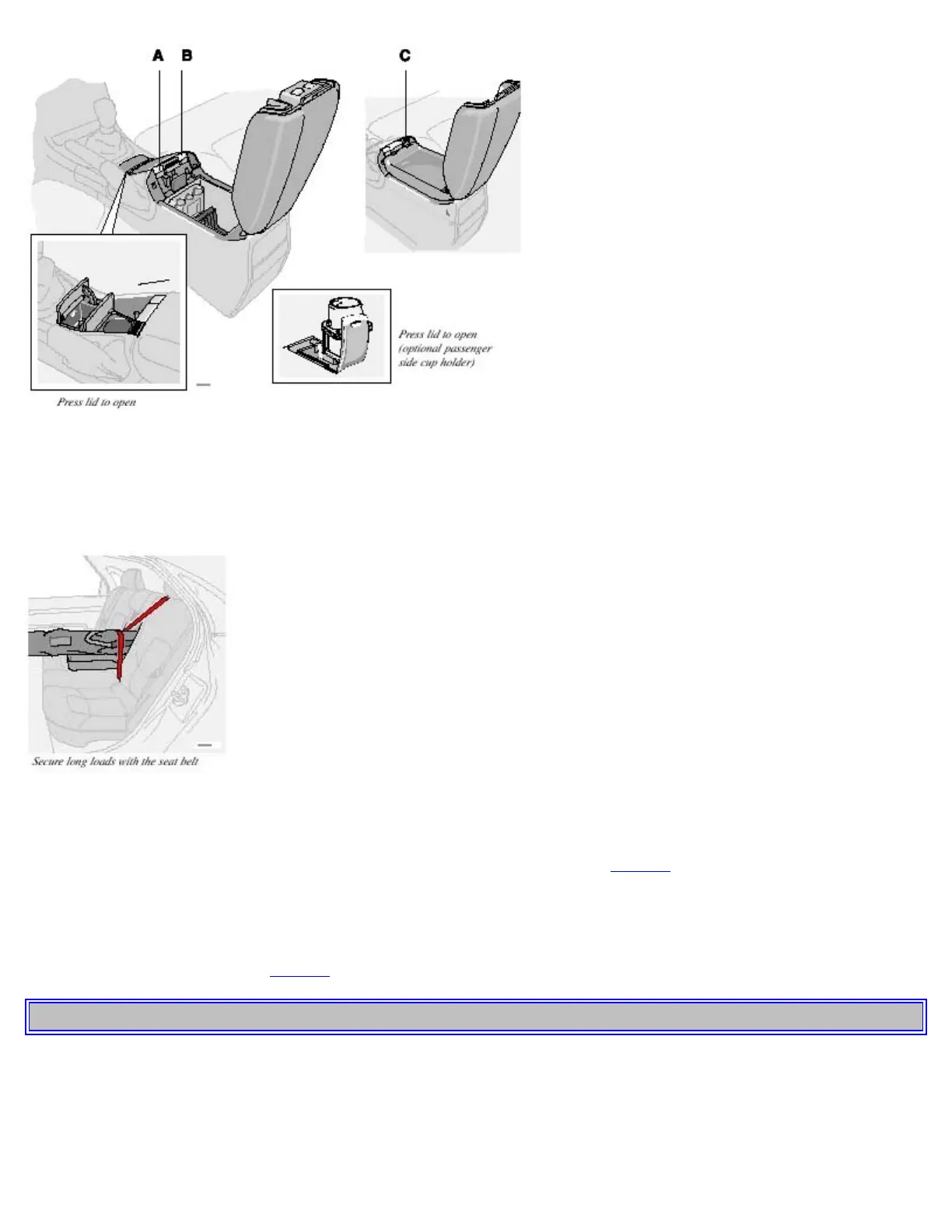 · Press button B to open the storage space in the center console for cassettes, change holder, etc.