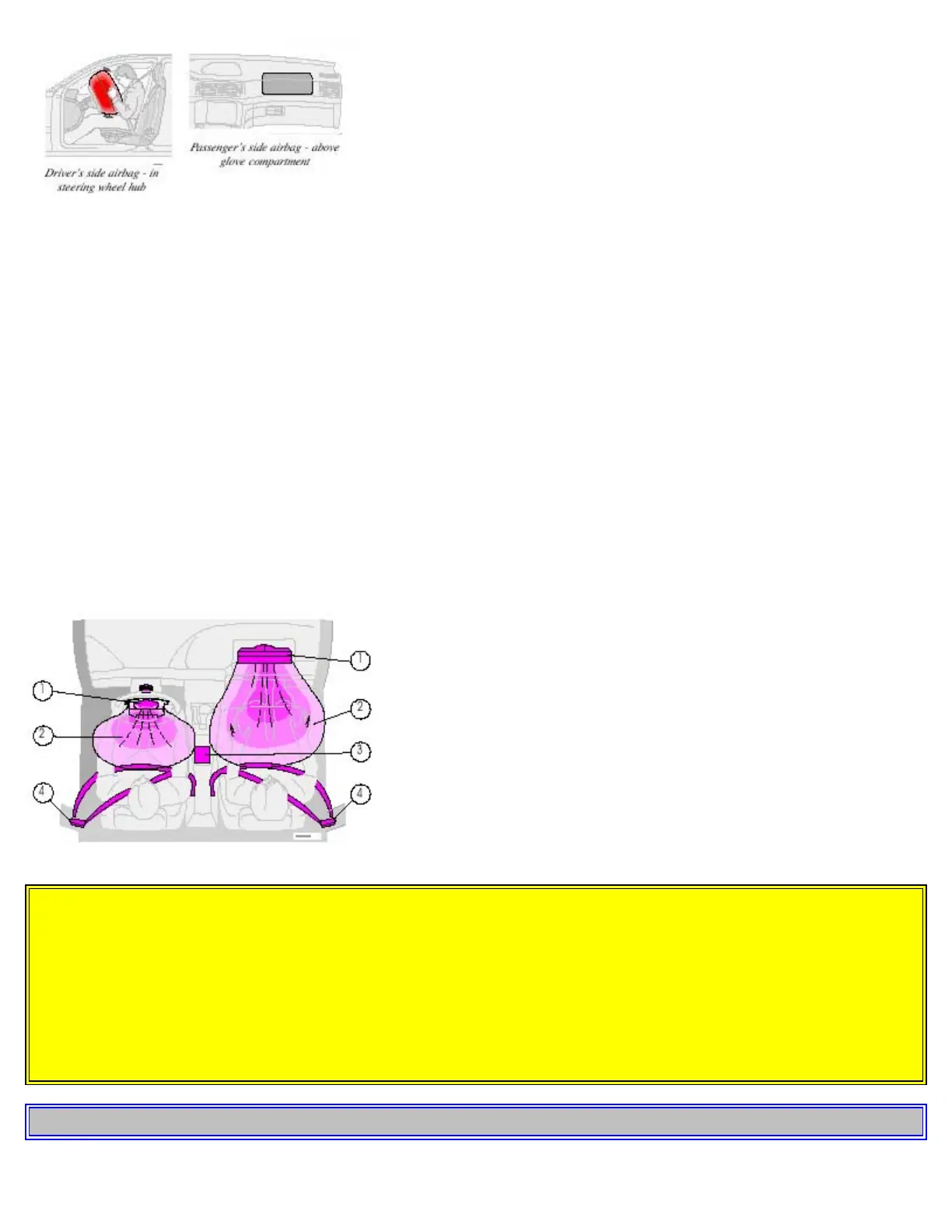 (SRS). The Volvo SRS consists of an airbag (2) on both the driver's and passenger's sides and seat belt tensioners in