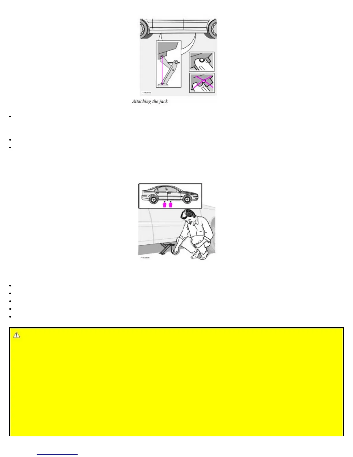 The jack must correctly engage the bar in the jack attachment. The car's weight must not rest on the jack attachment.
