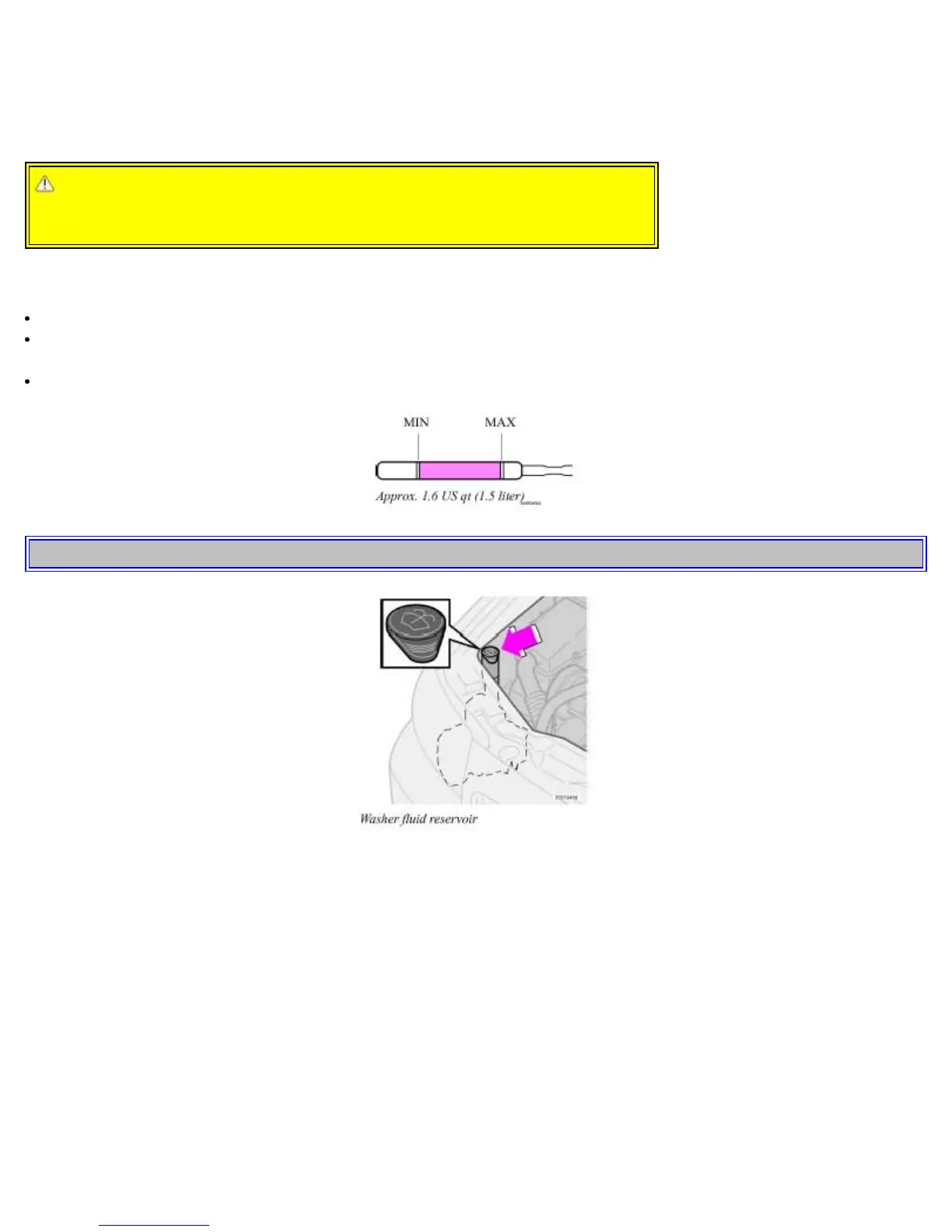 During cold weather, the reservoir should be filled with windshield washer solvent containing antifreeze.