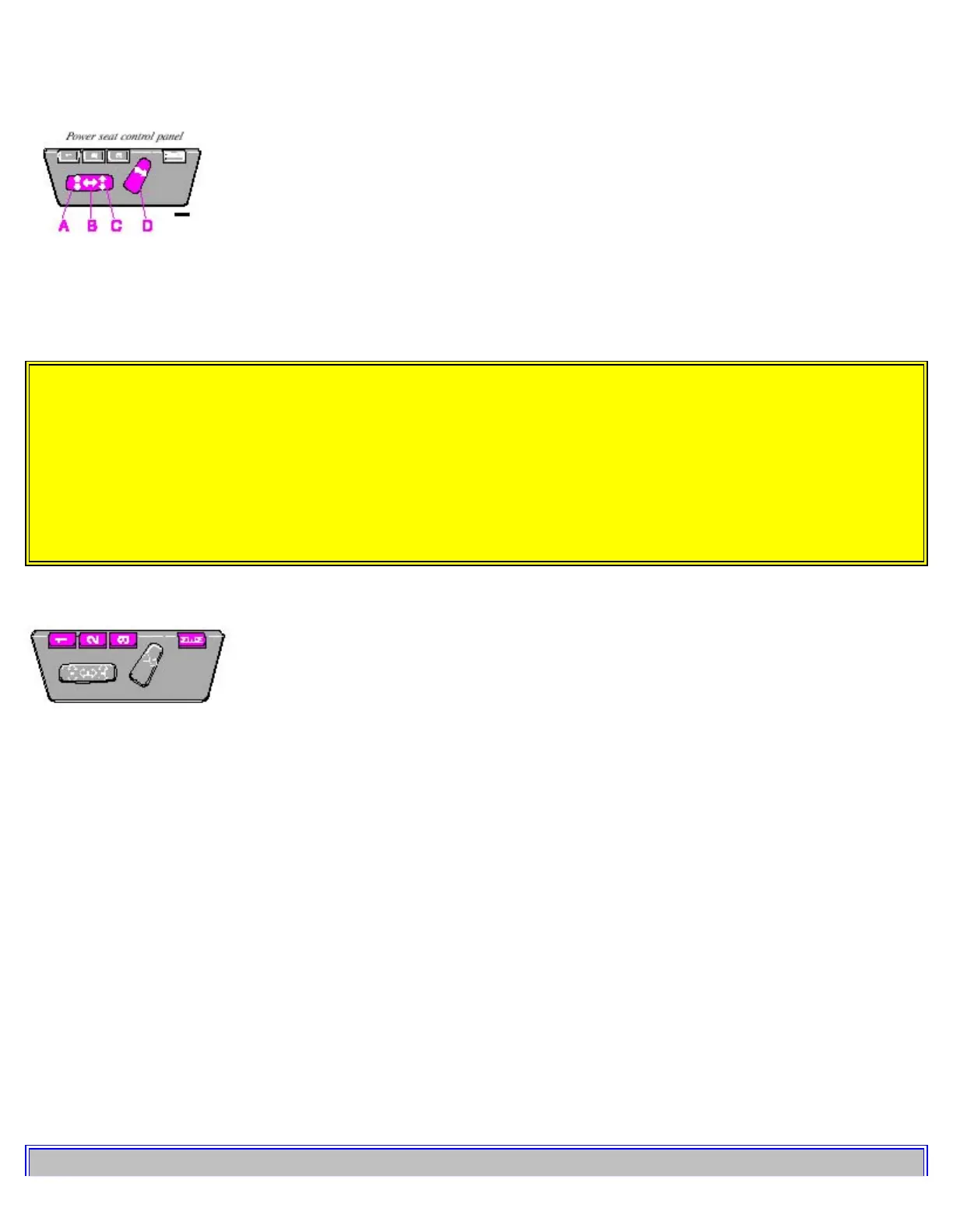 · Movement of the seat can be STOPPED at any time by pressing any button on the power seat control panel.