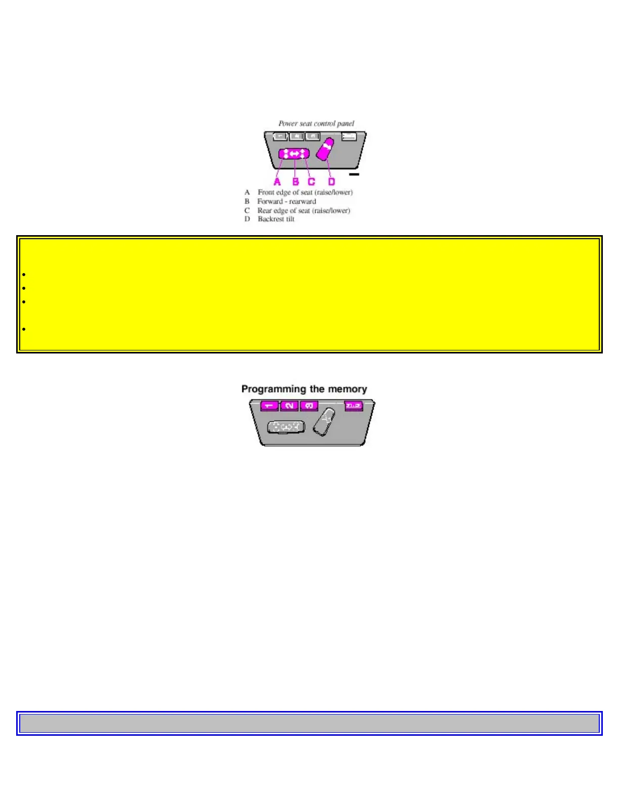 Buttons 2 and 3 can be programmed in the same way. To move the seat to a programmed position, press and hold
