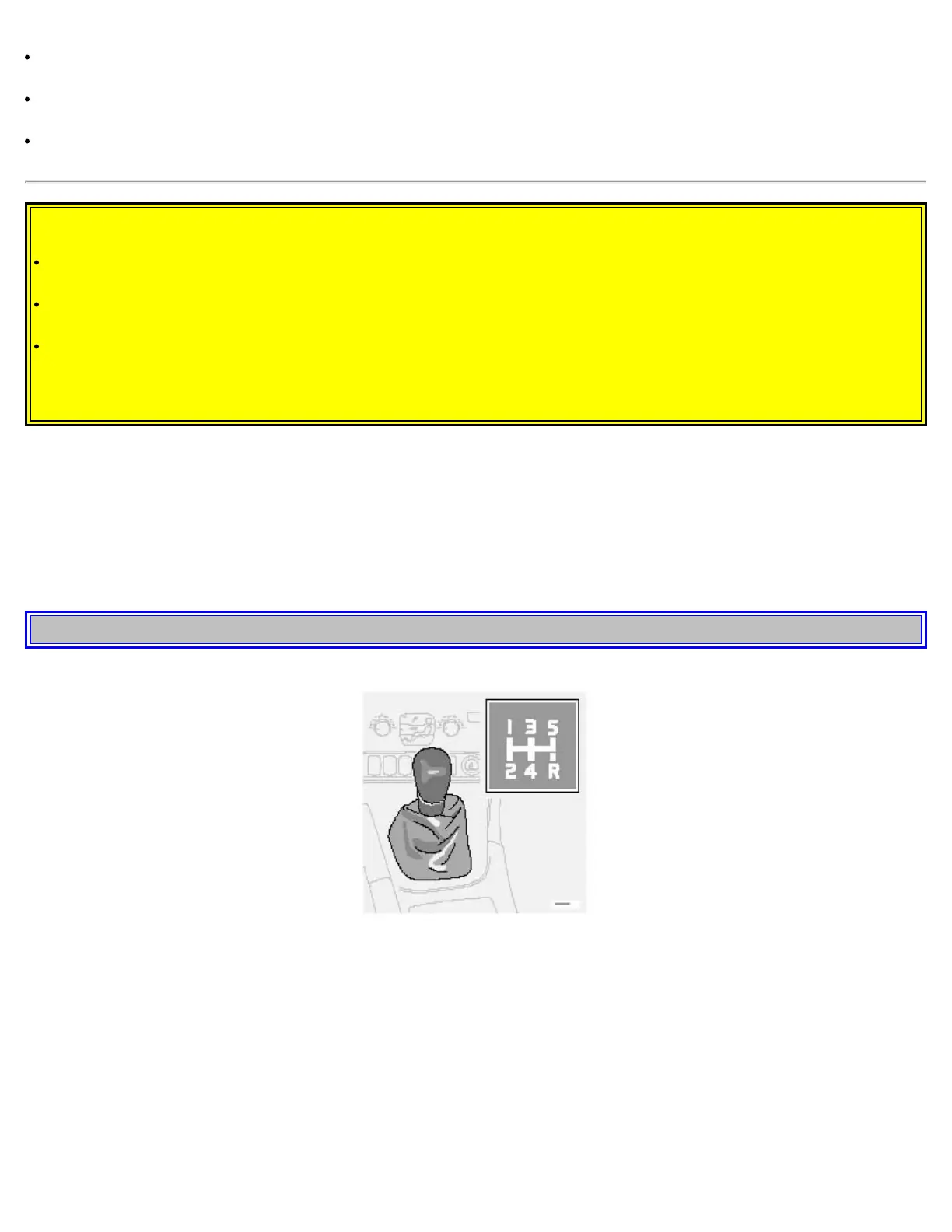 Remove your foot from the clutch pedal while driving. The shift pattern should be followed. Overdrive (5th gear)