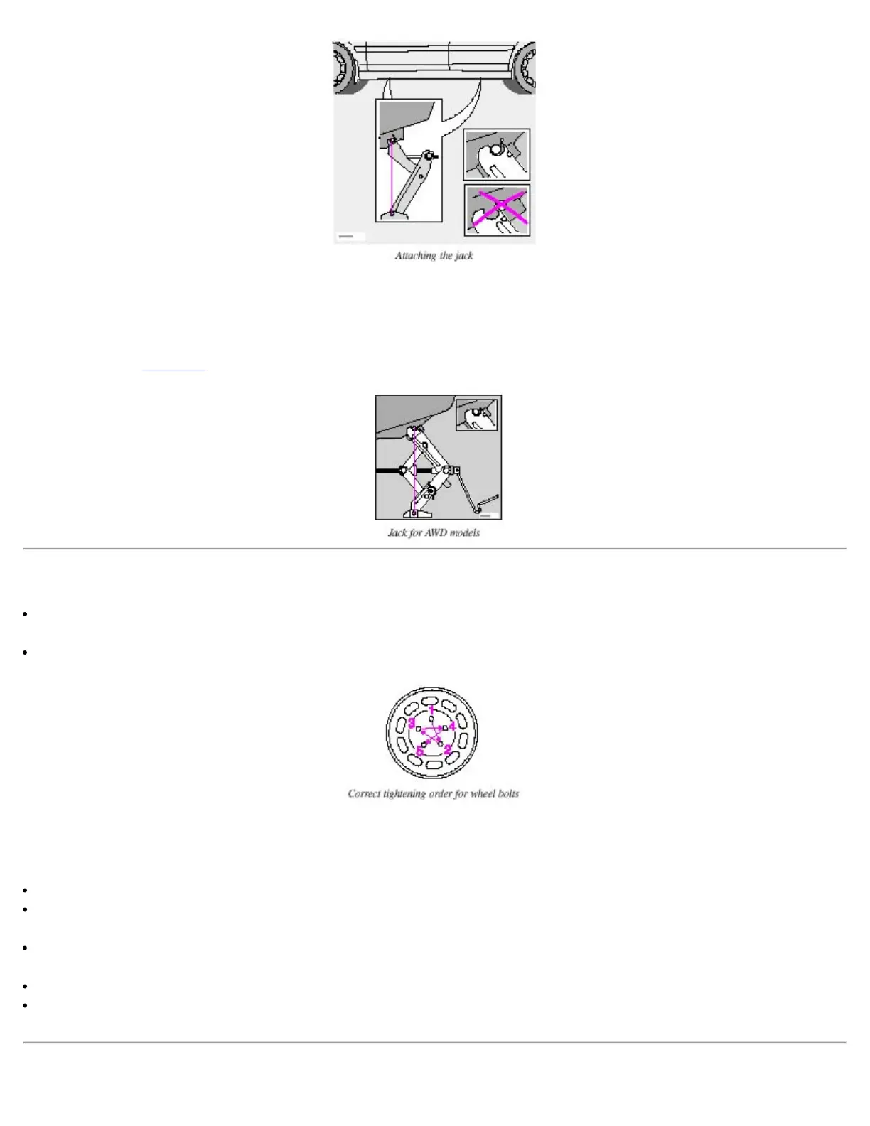 Install the wheel bolts and tighten hand-tight. Using the lug wrench, tighten crosswise (see illustration above) until