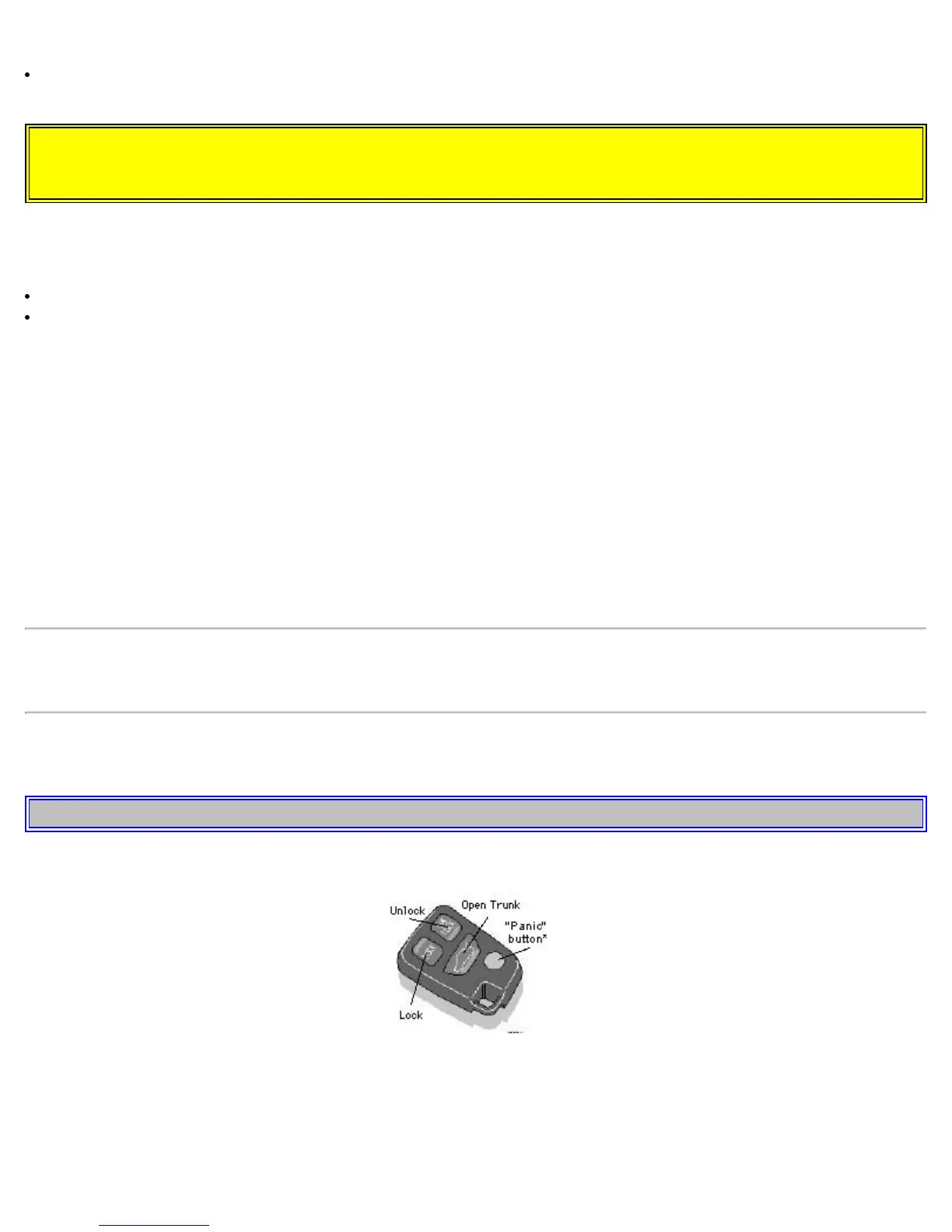 "keyless" entry into the passenger compartment or the trunk. You will be supplied with two coded key ring