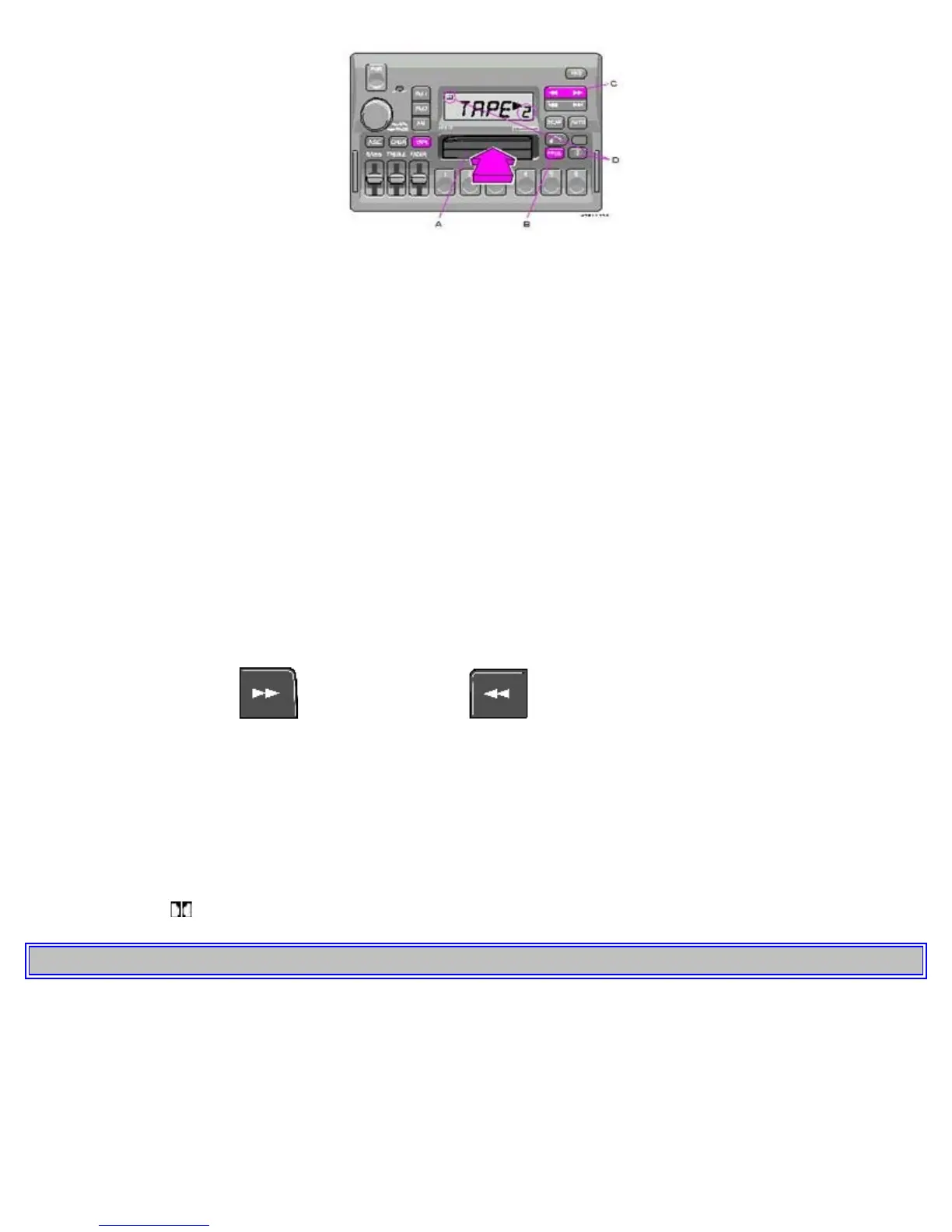 When the cassette is inserted, the radio is disengaged and the cassette will start to play automatically. "TAPE > " or