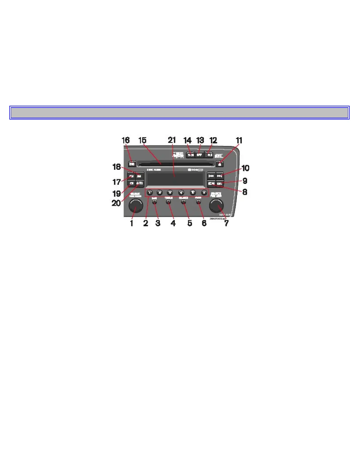 2. Buttons for selecting stored radio stations/discs in optional CD changer