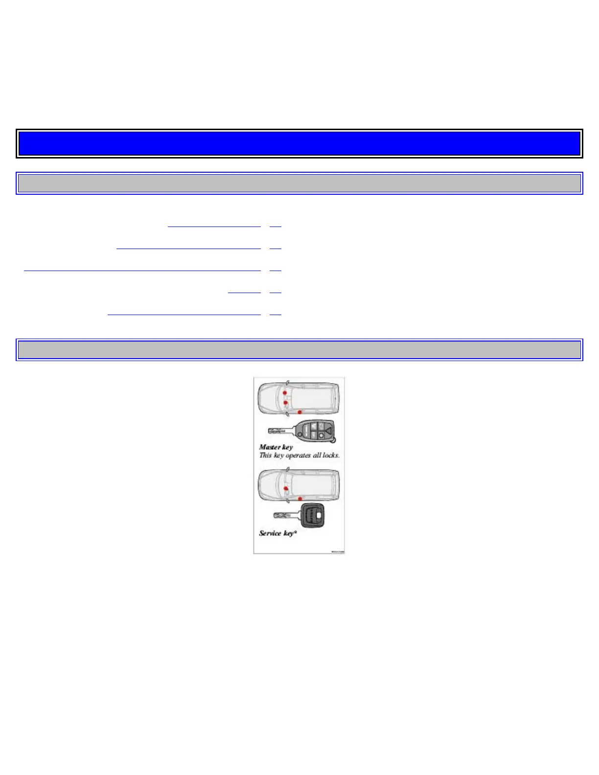 Two types of keys are provided with your car; master keys and a service key. The master key, the remote control, and