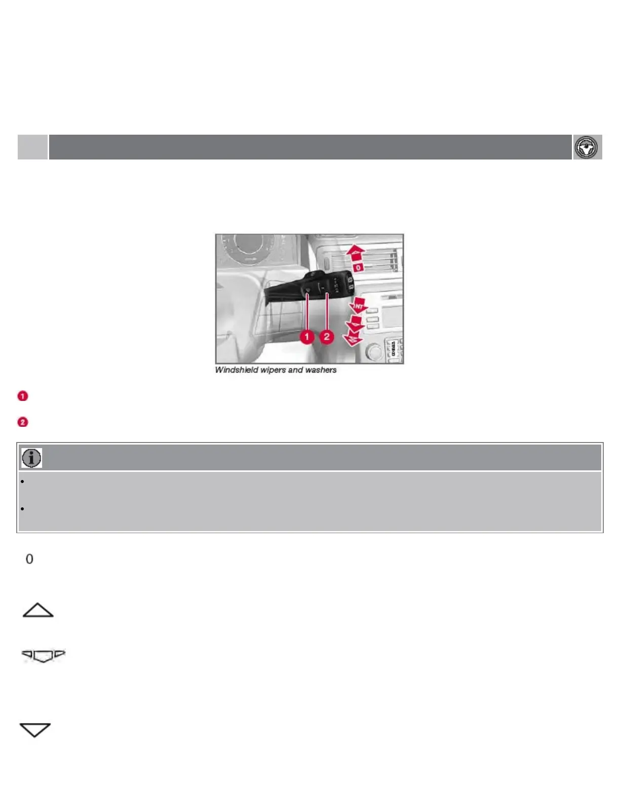 Move the lever upward from position 0 to sweep the windshield one stroke at a time for as long as the lever is held up.