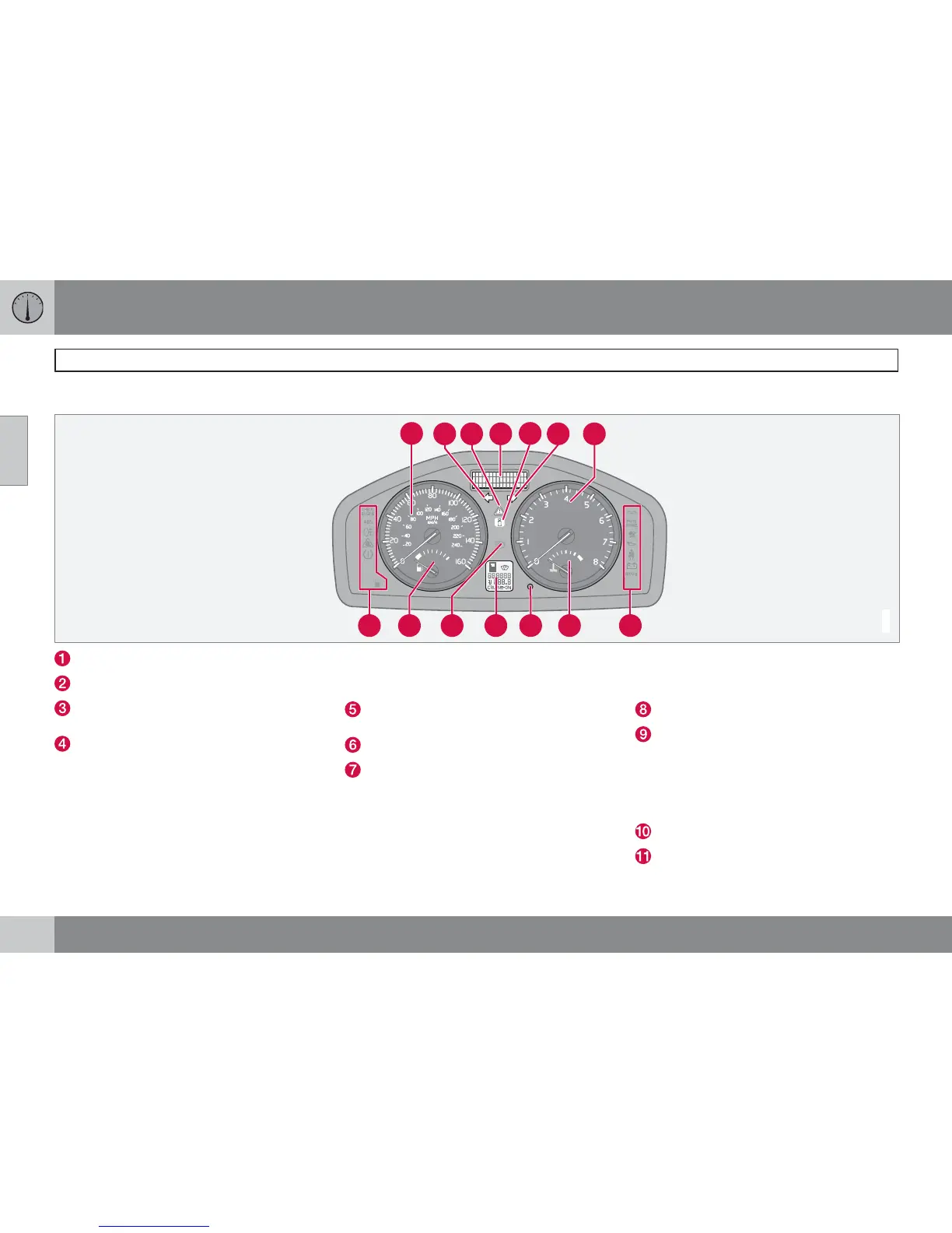 Fuel gauge, see page 271 for fuel tank vol-