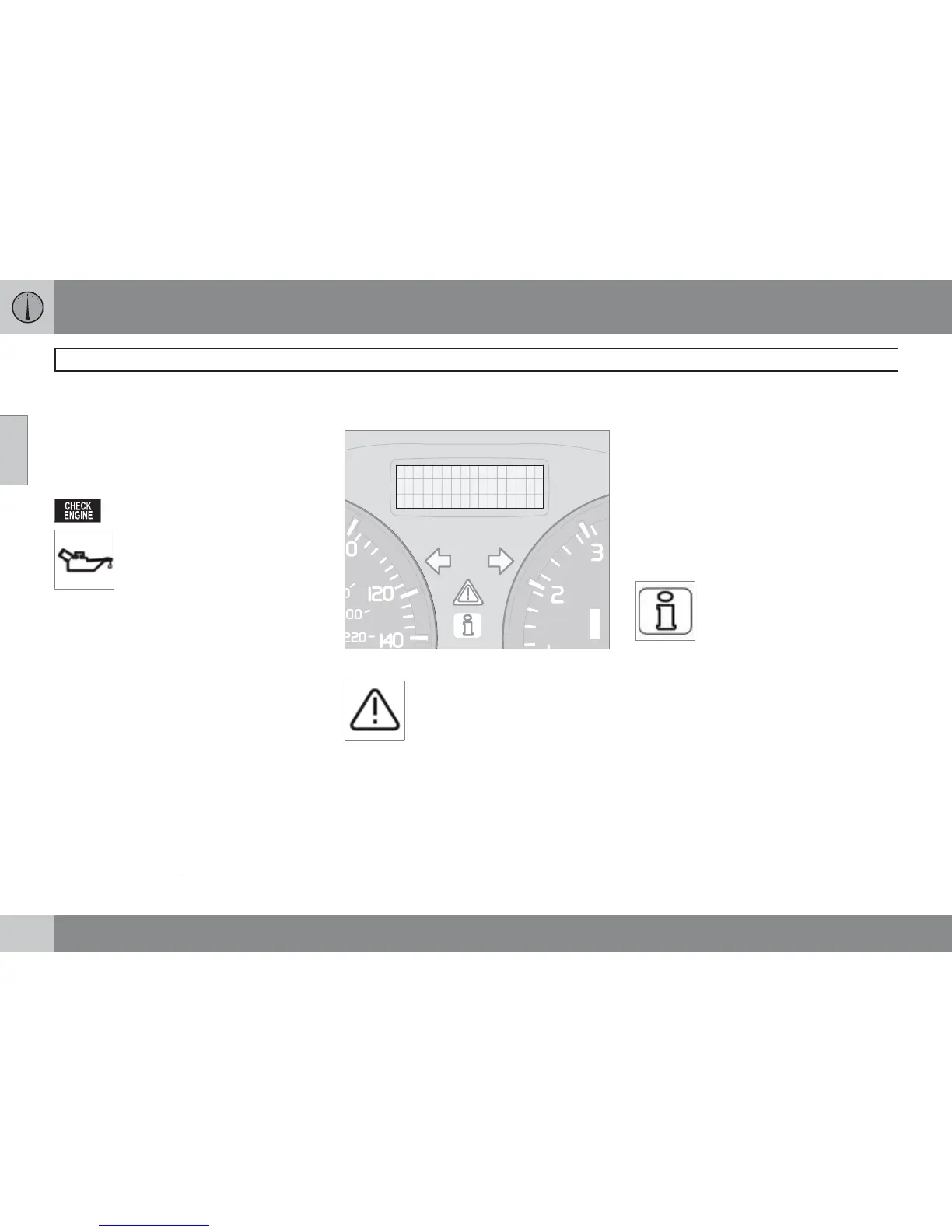 On certain engines, the symbol for low oil pressure is not used. Instead, a text warning is provided in the information display, see page 217.