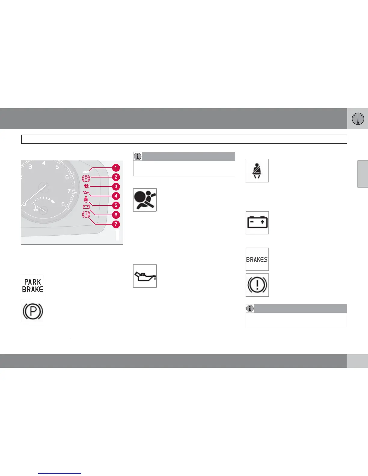 On certain engines, this symbol is not used to indicate low oil pressure. Instead, a text warning is provided in the information display, see also page 217.