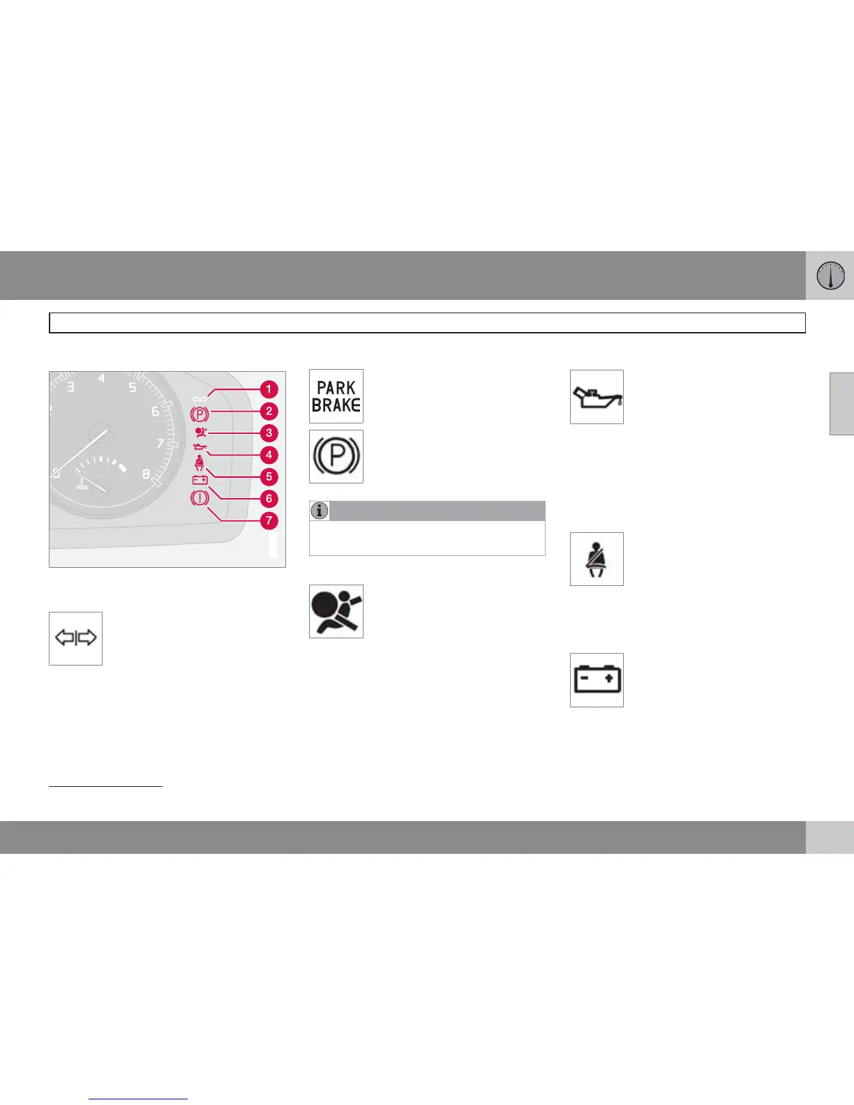 On certain engines, this symbol is not used to indicate low oil pressure. Instead, a text warning is provided in the information display, see also page 215.
