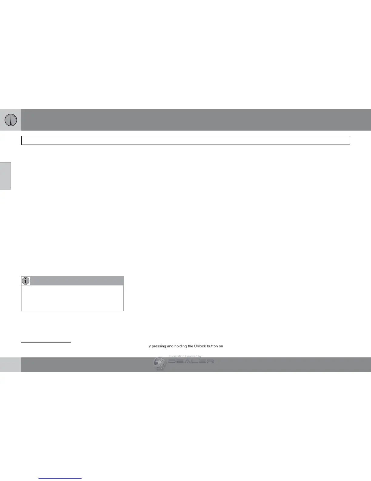 This menu alternative also makes it possible to open both door windows by pressing and holding the Unlock button on the remote key for several seconds.