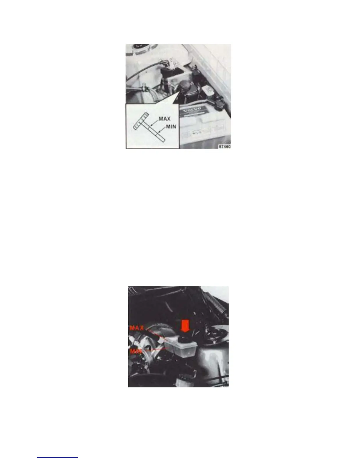 The dipstick is attached to the cap. Fluid level should be between MIN and MAX marks. Add fluid