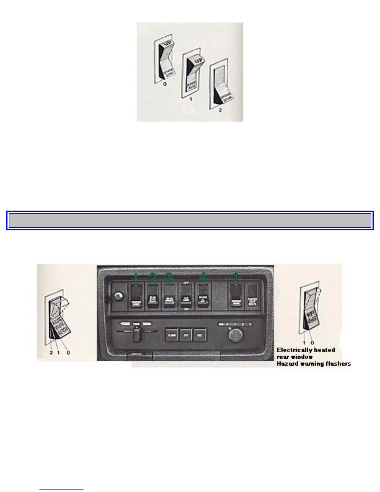 pg. 13 Tail gate window wiper, el. heated rear window, hazard warning flasher