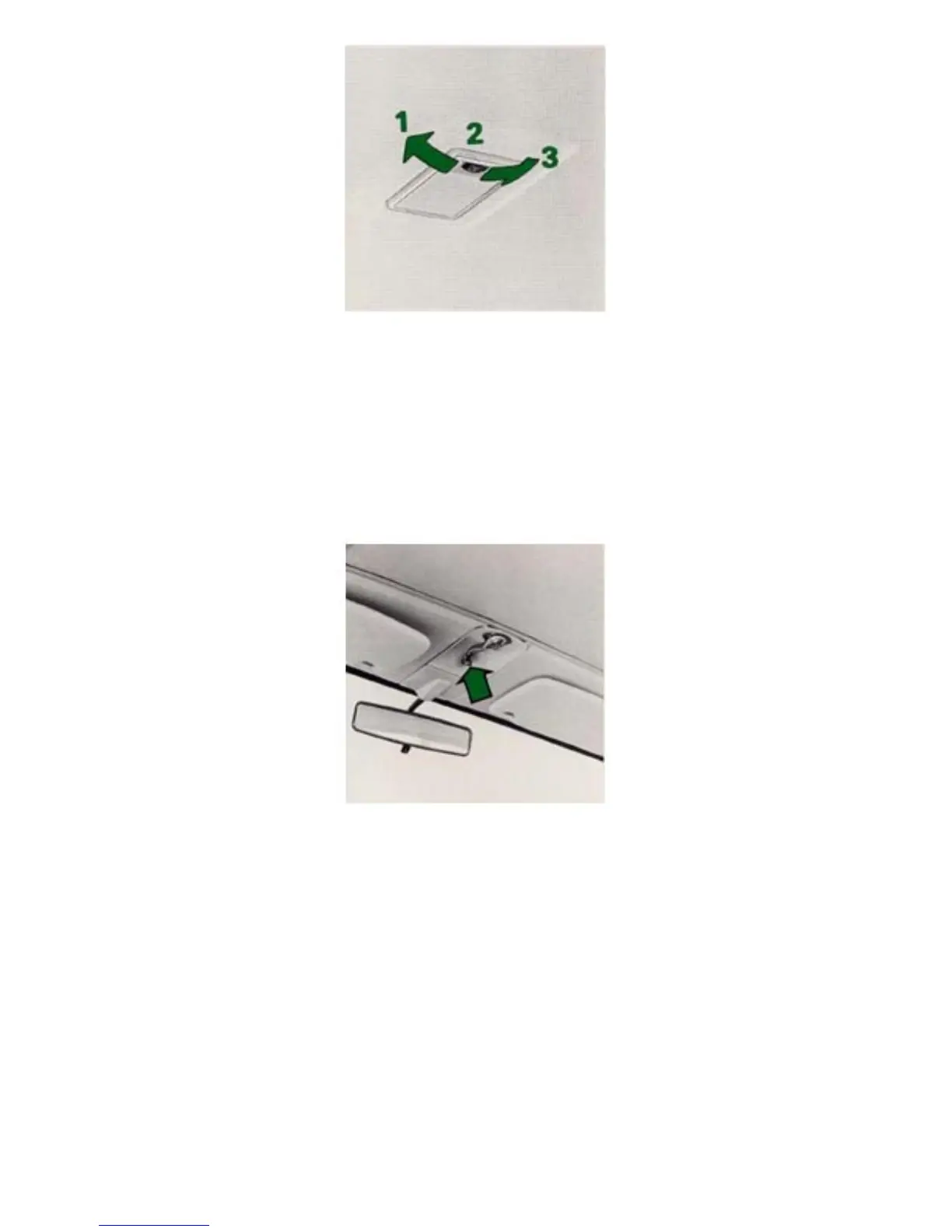 The sun roof is operated by a handle located between the sun visors.