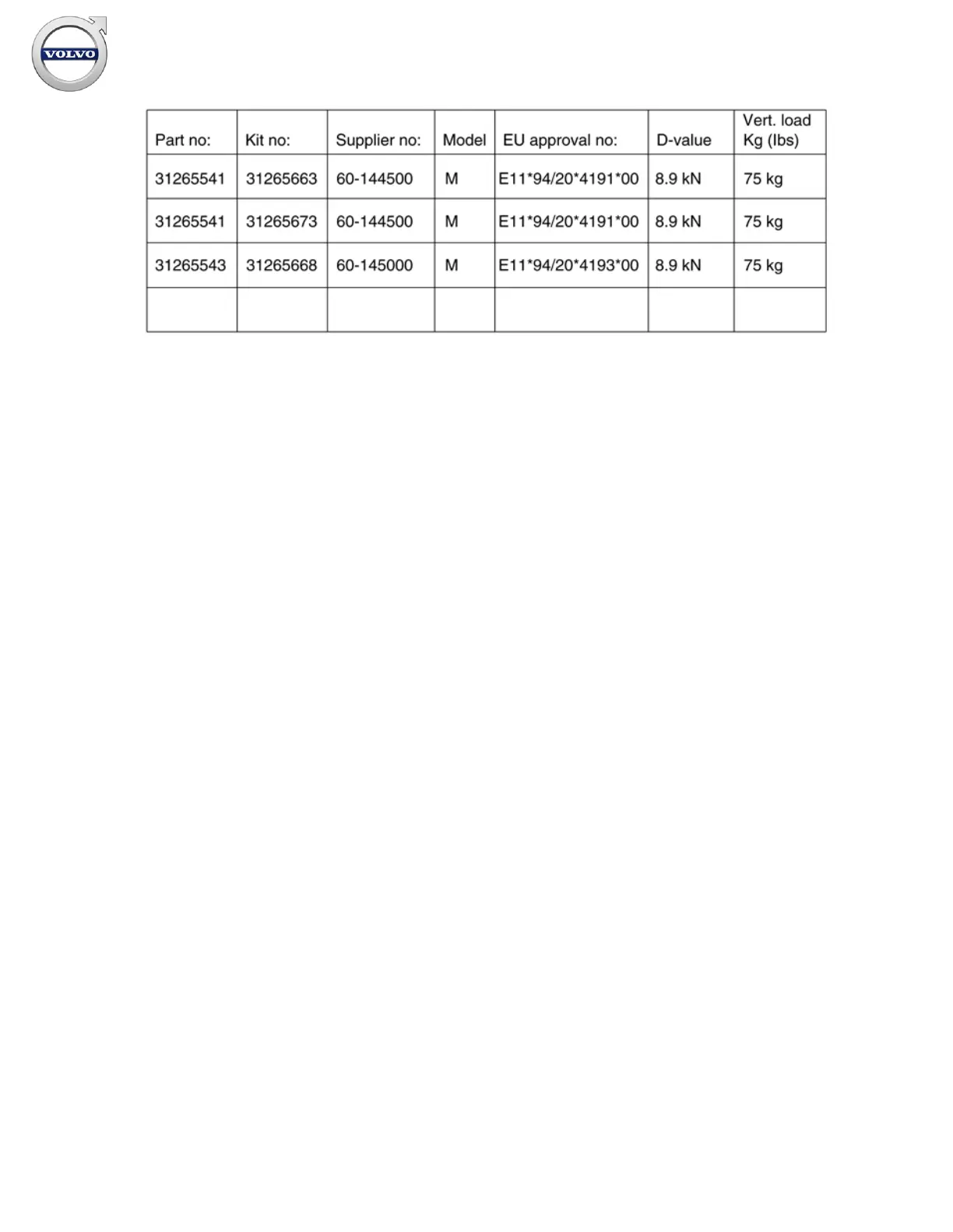 © Volvo Car Corporation Tow hitch, fixed- 31265459 - V1.4