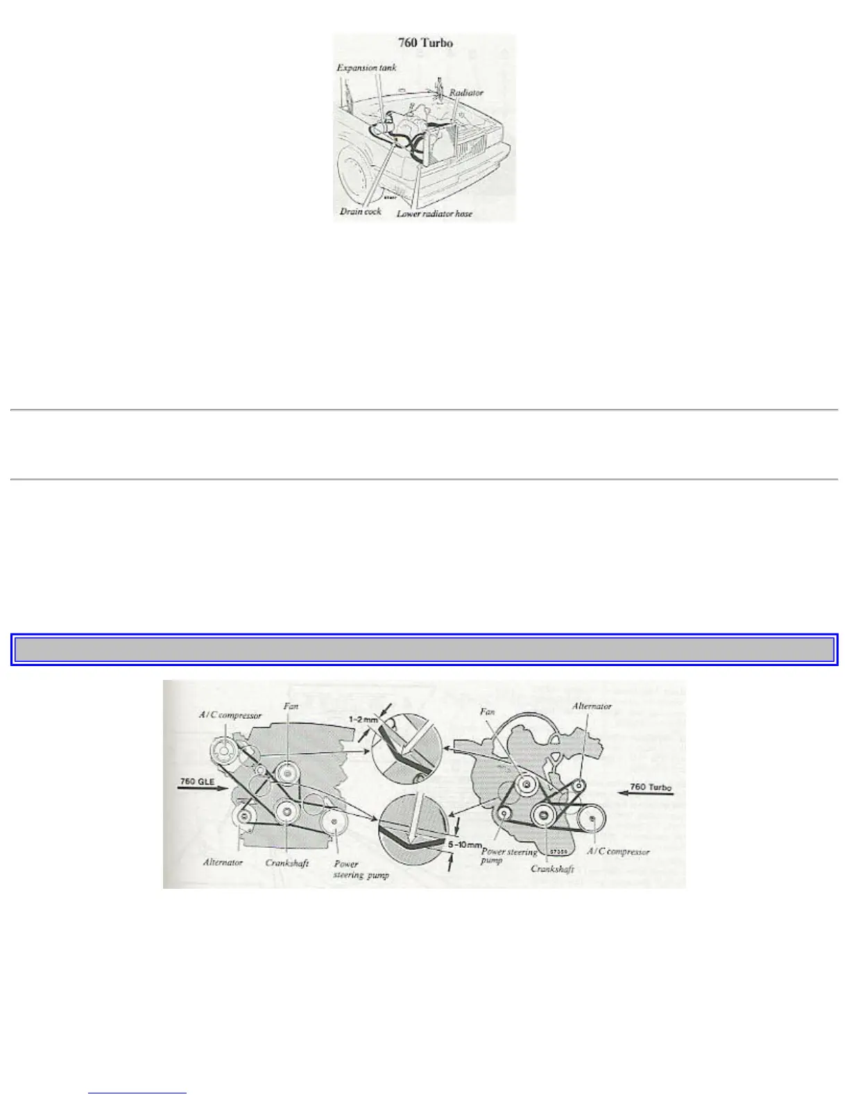 Remove the expansion tank cap. Open the drain cocks on both sides of the engine block and disconnect the lower radiator hose.