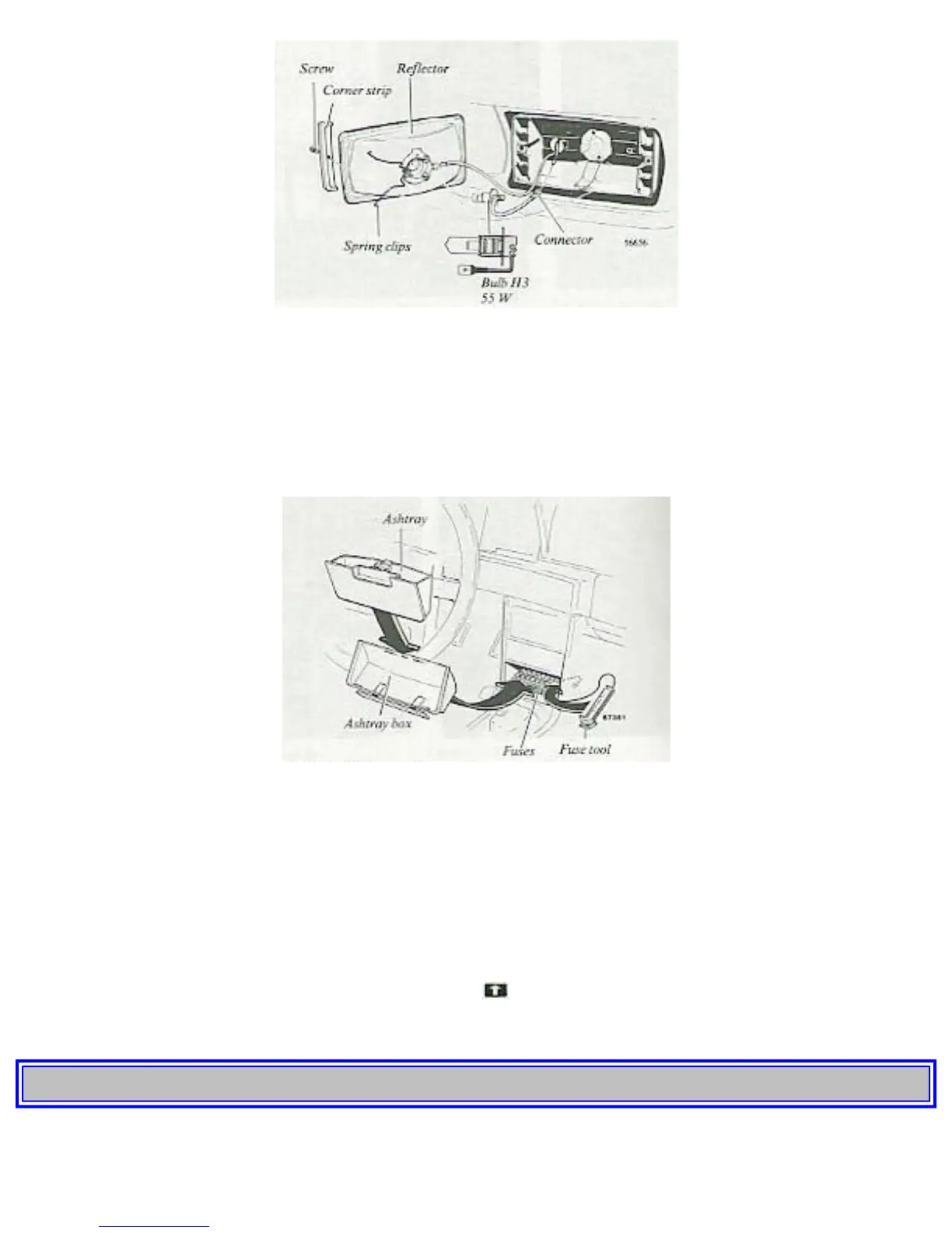 Remove the spring clips holding the bulb. Withdraw the connector and install a new bulb. Replace parts