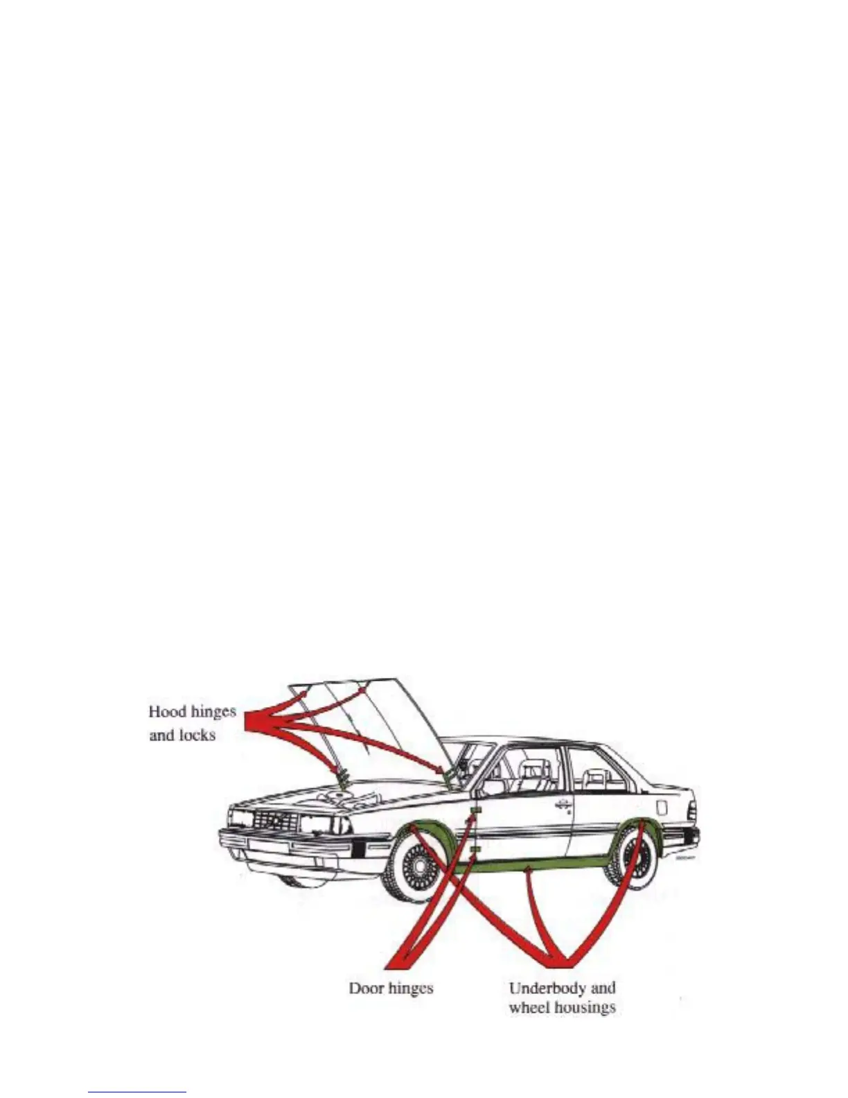 Parts of the car which may need to be touched up and the recommended rustproofing compound are: