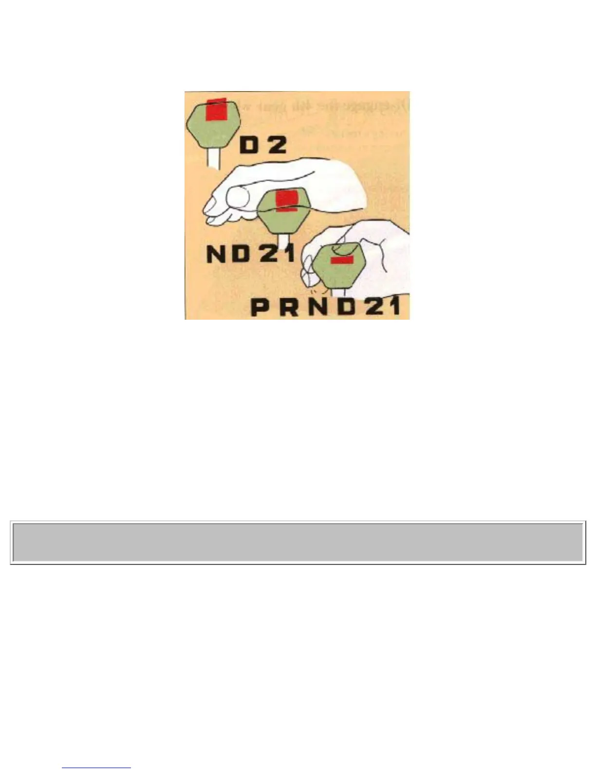 The gear selector can be moved freely between D and 2. Selections of other positions are obtained by