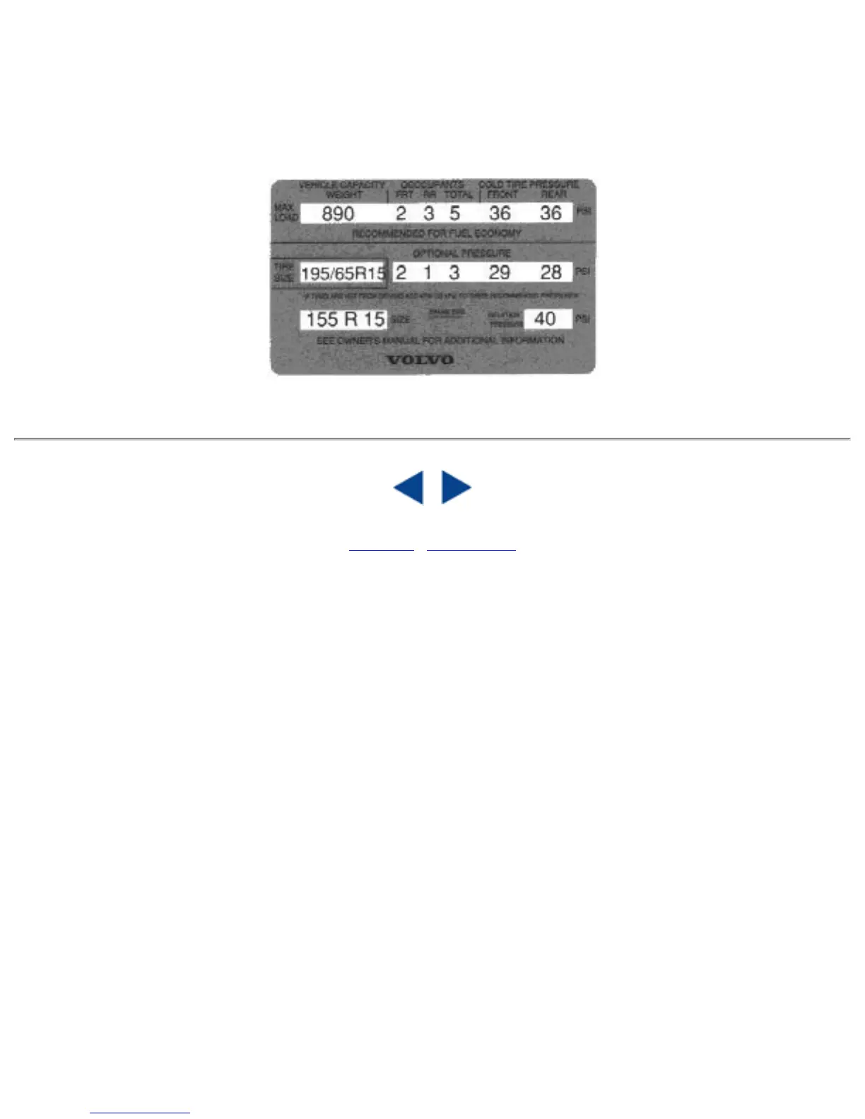 Sample tire pressure label