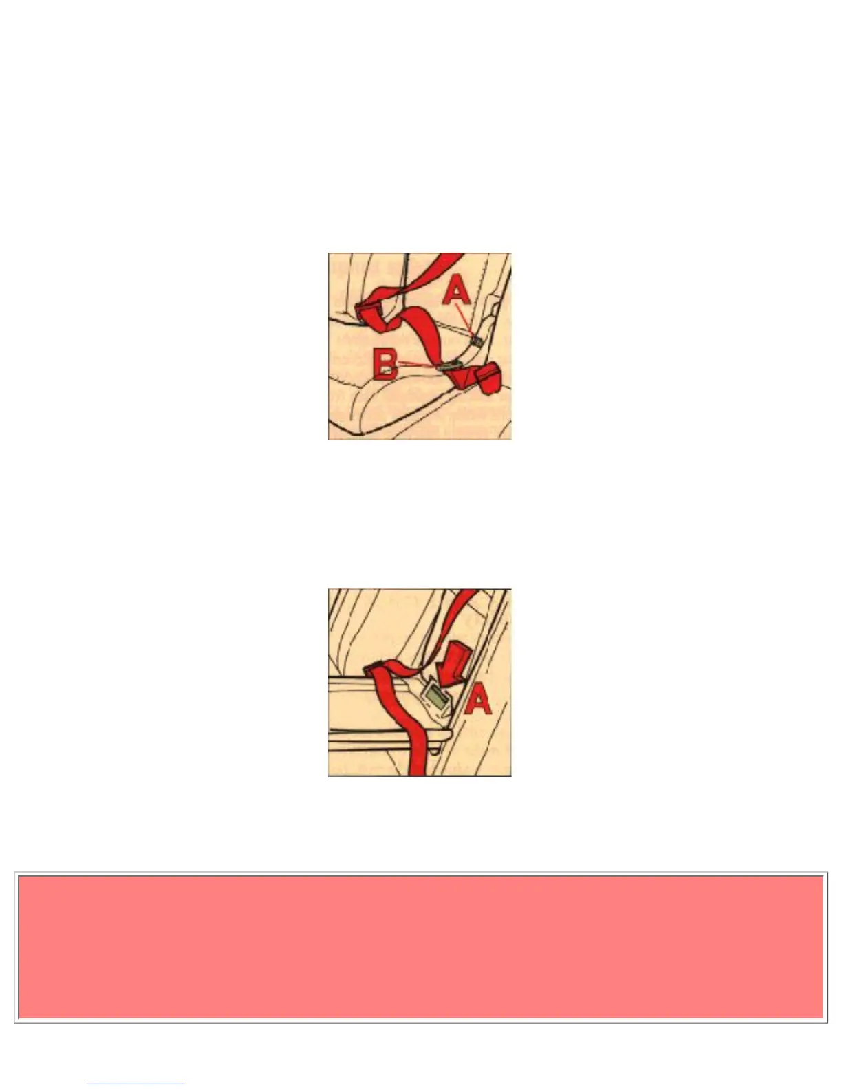 With the child seated on the cushion, the hip section of the three-point belt must pass through seat belt