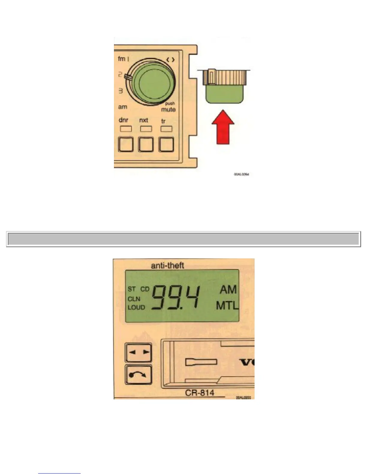 The display shows the set waveband (AM, FM) radio frequency, ST (stereo) LOUD (loudness), tape