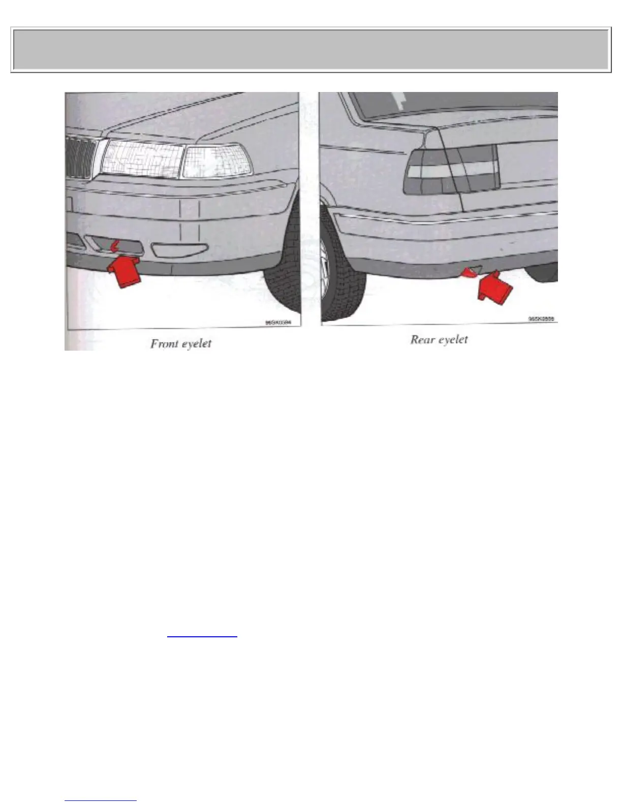 CAUTION: The towing eyelets must not be used for pulling another vehicle out of a ditch or any similar