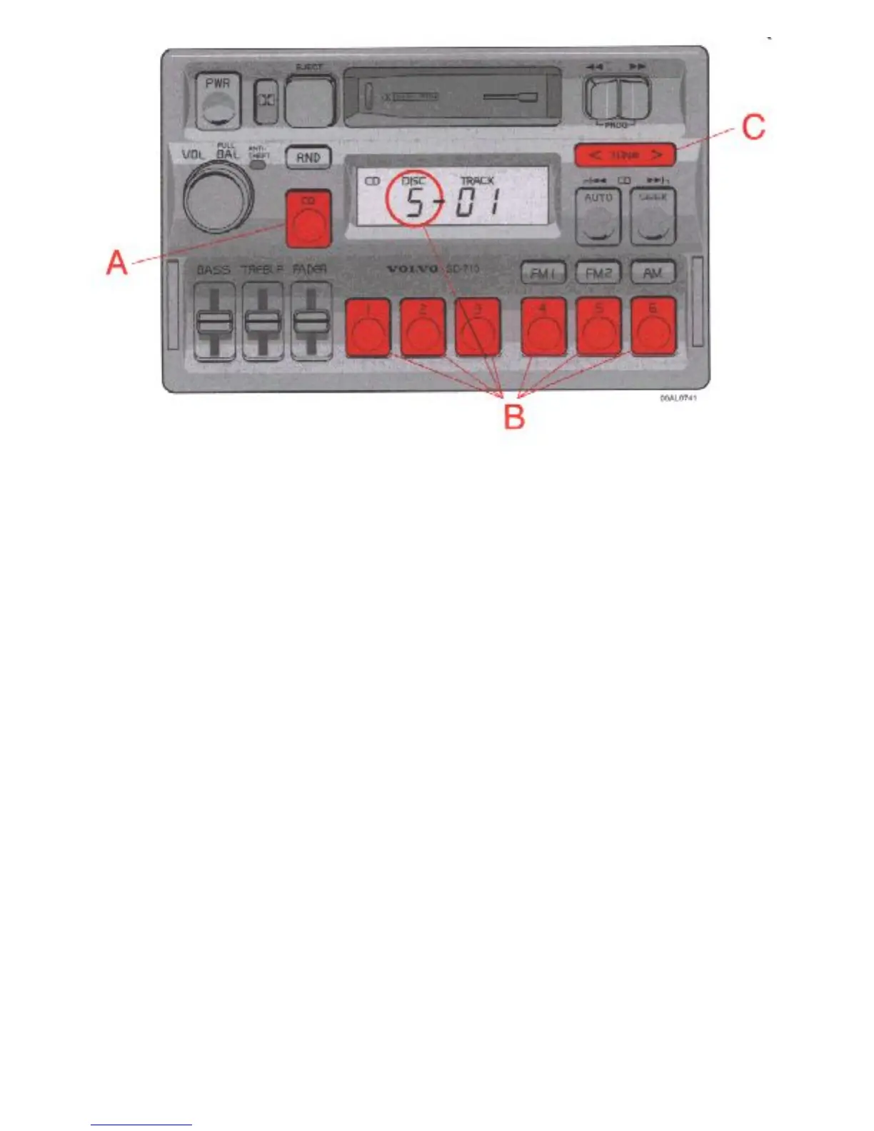 Press the TUNE button to search within a track. While the button is depressed the playing time for this