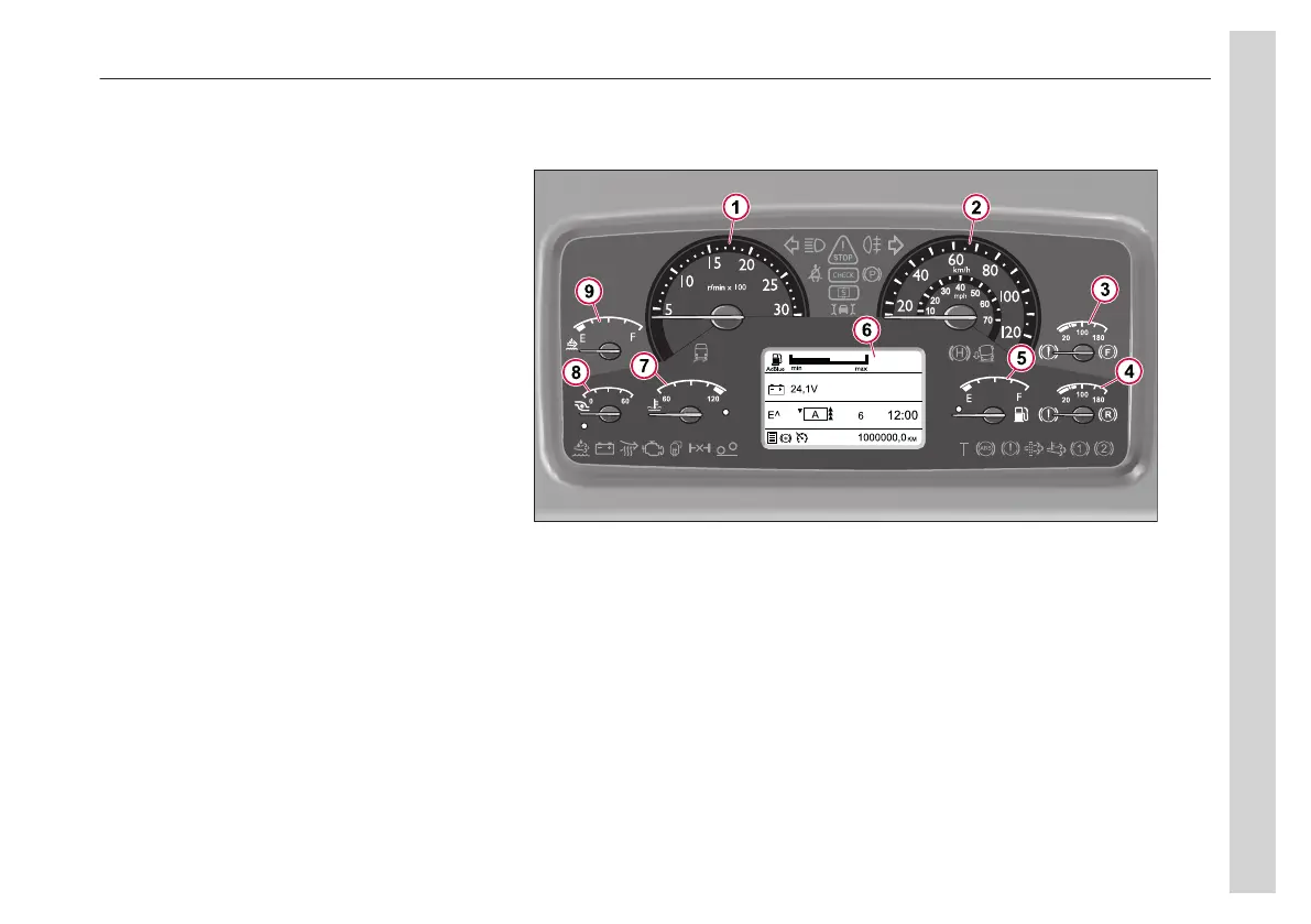 The instrument cluster contains different gauges.