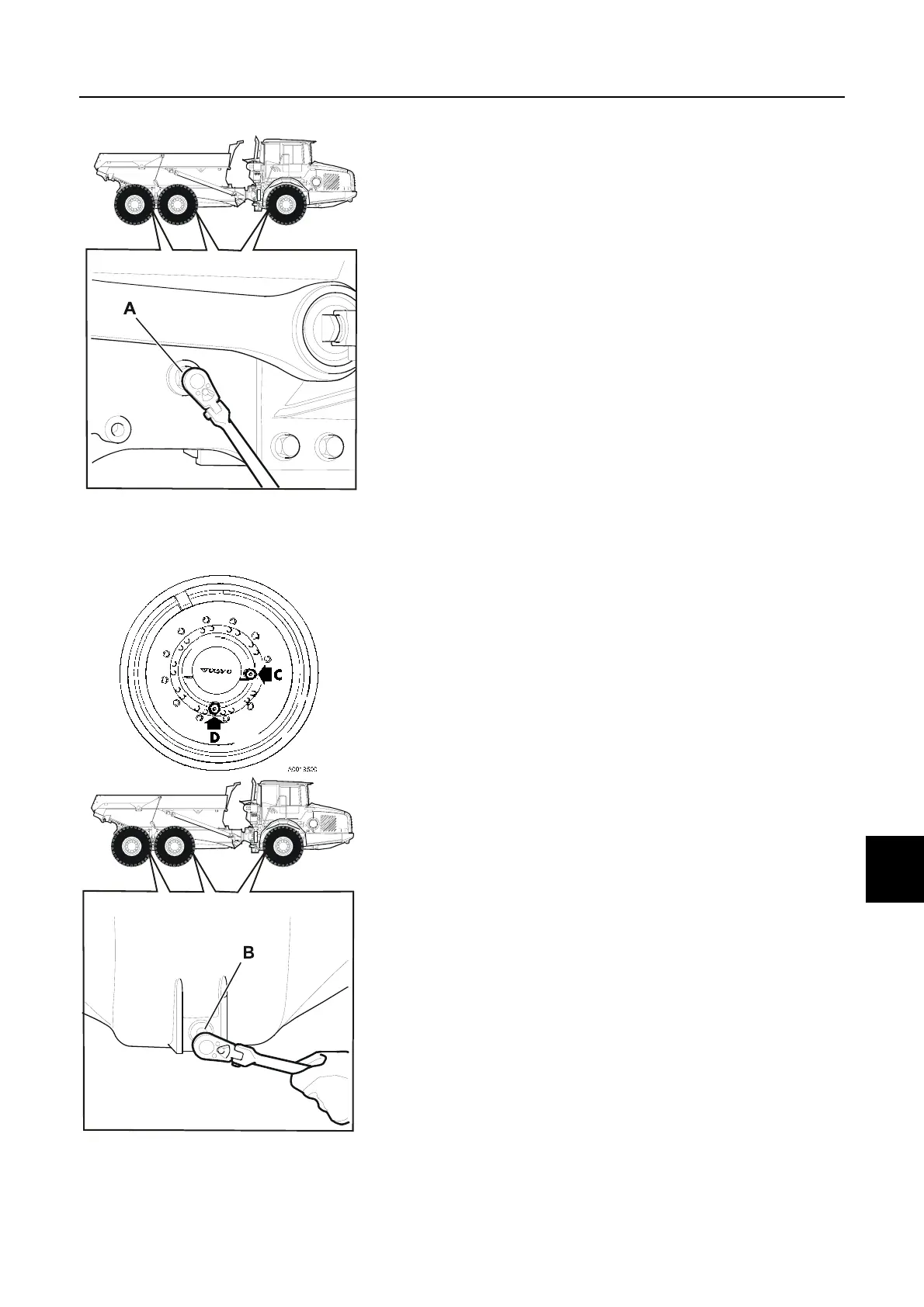 4 Adjust the wheel so that the plug (D) ends up in position (C).
