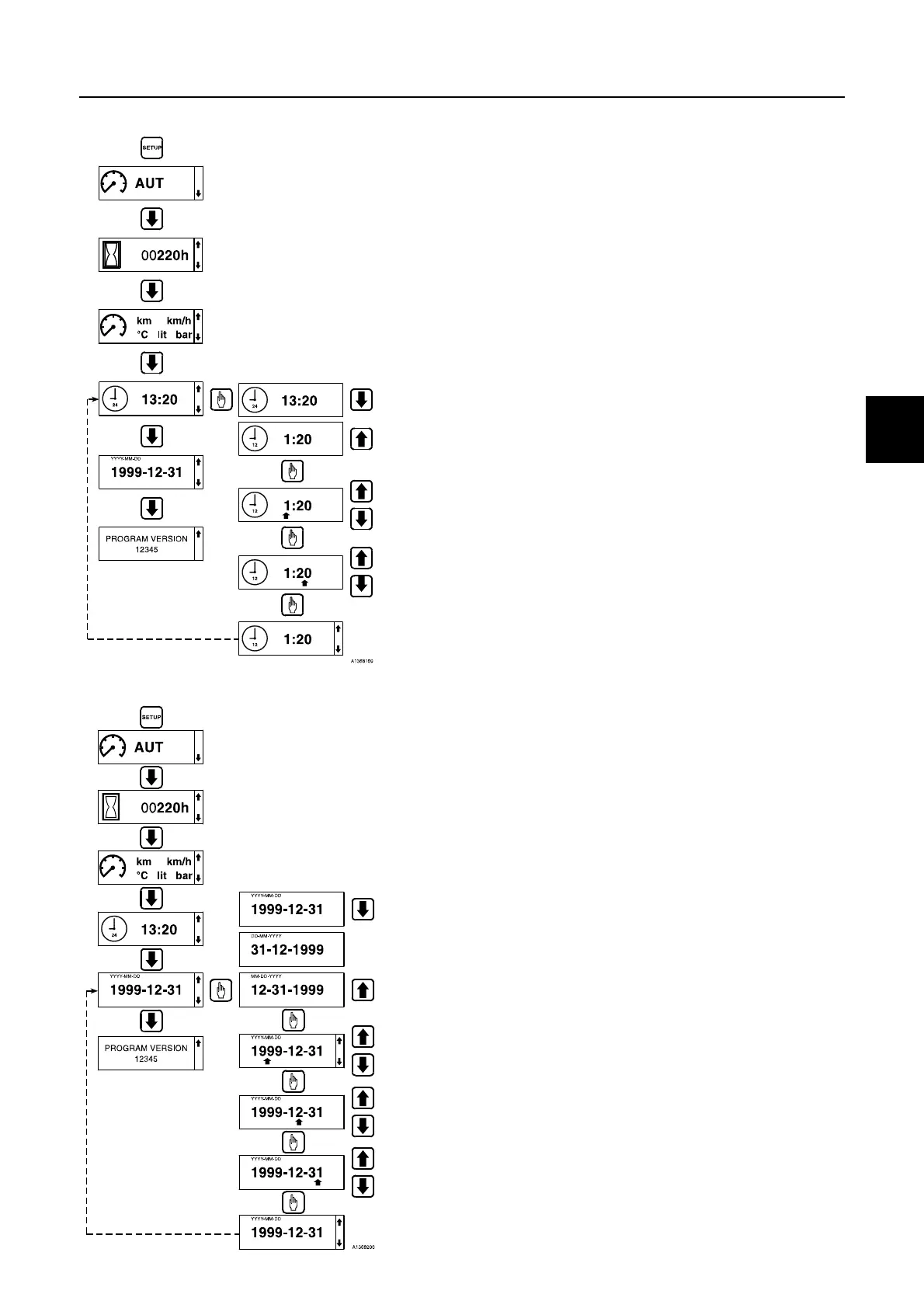 2 Press the arrow down key to the date screen.