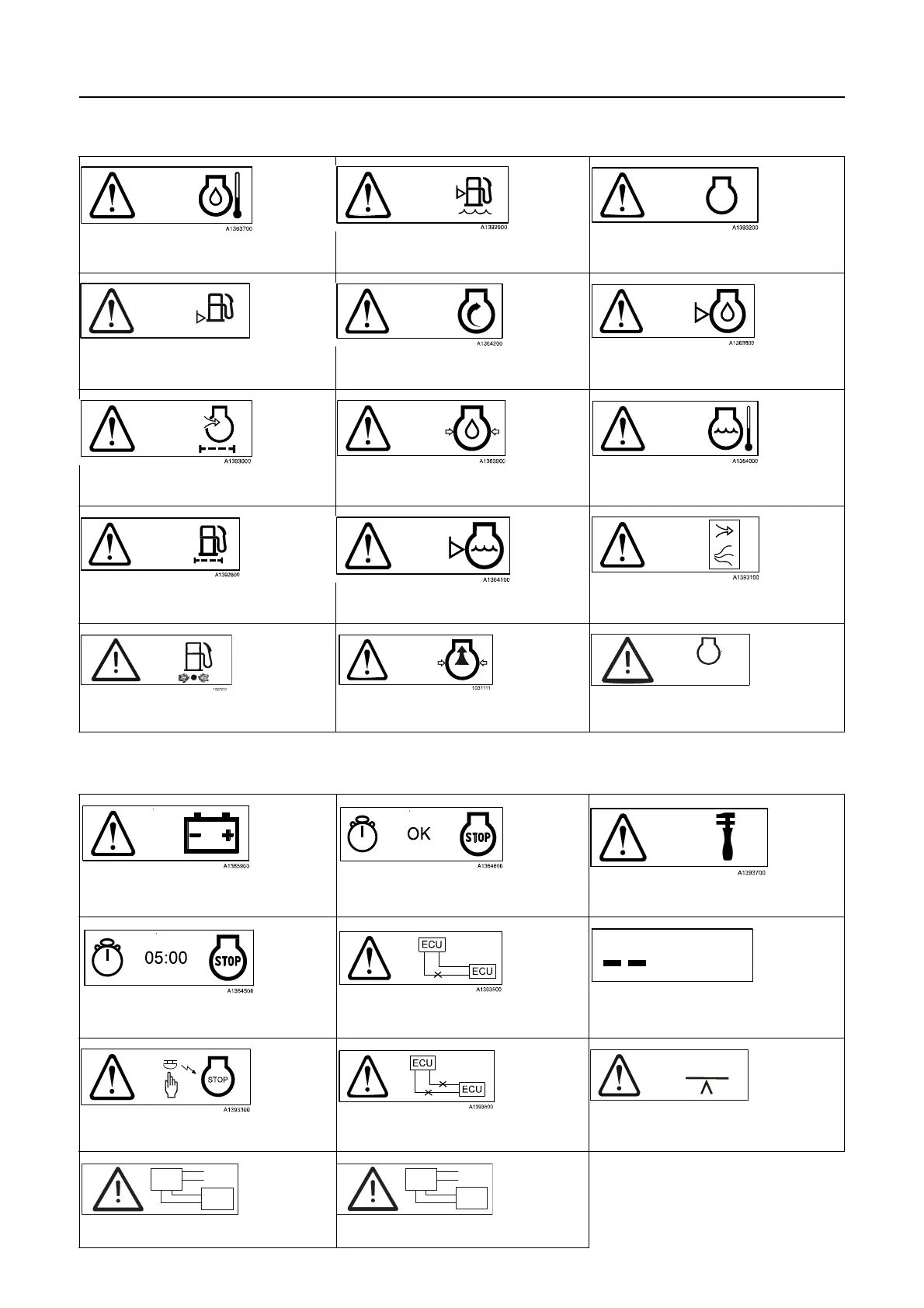 High engine oil temperature Water in fuel Engine, high/low speed