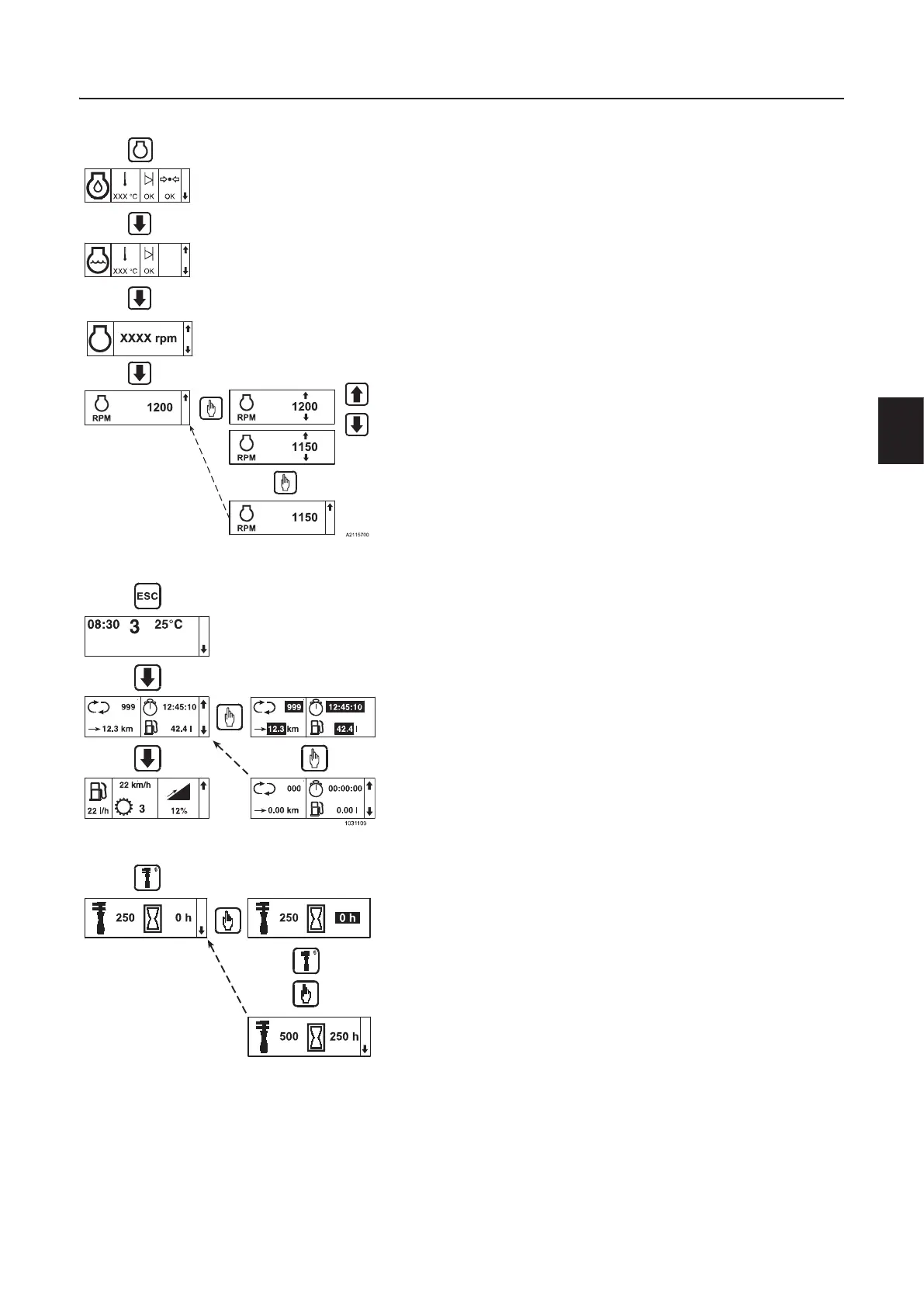 2 Press the arrow down key to the screen which shows values