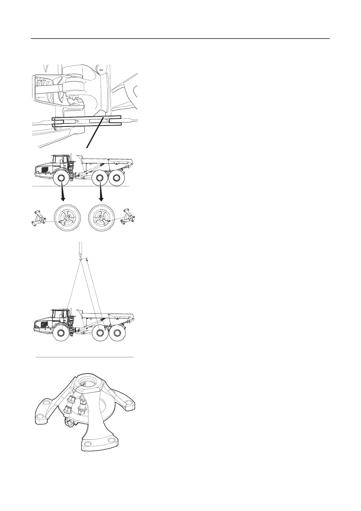 4 Install the lifting tool to front axle and the front bogie axle and