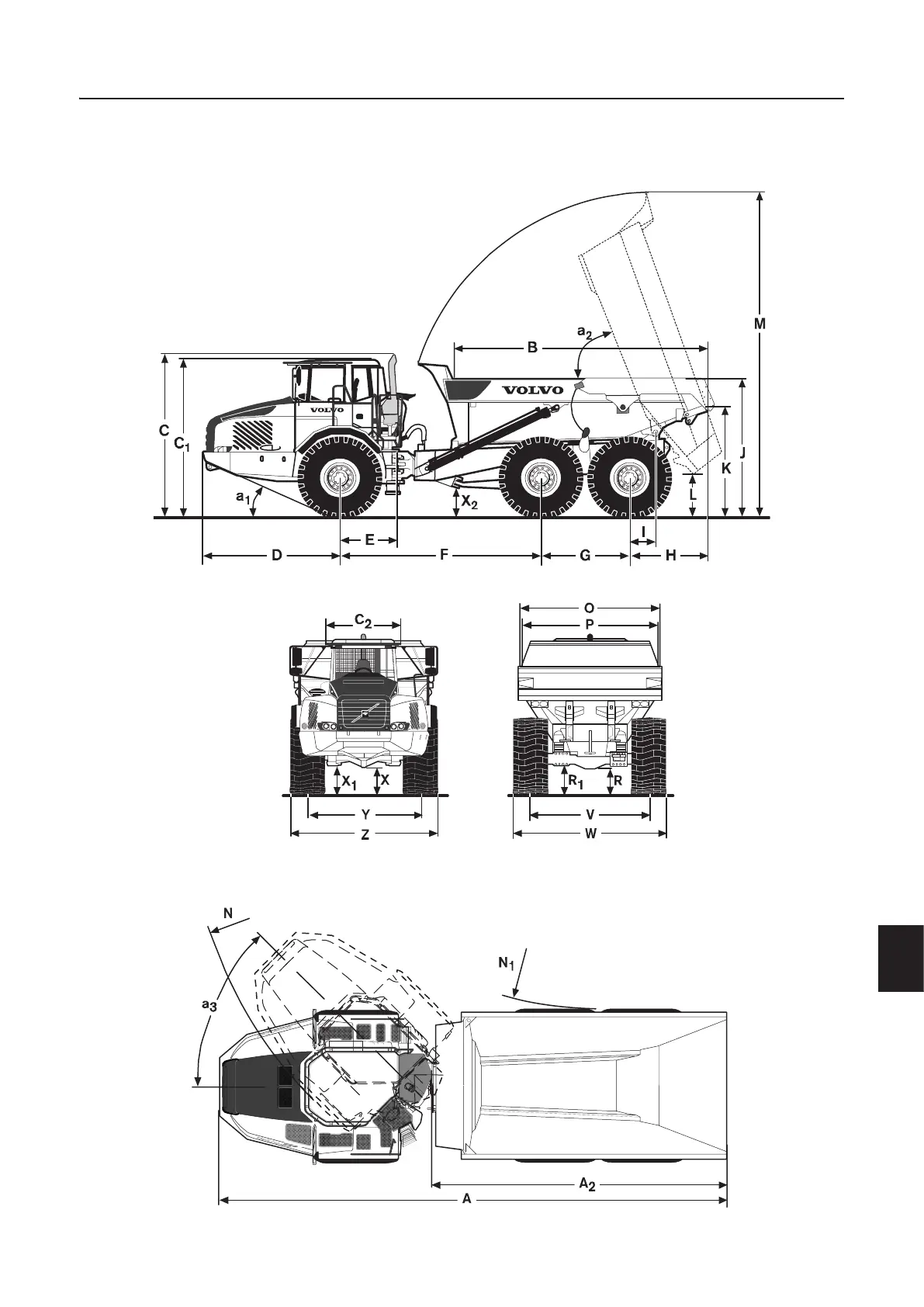 Volvo A40E - Dimensional drawing, A35 E FS;A40 E FS