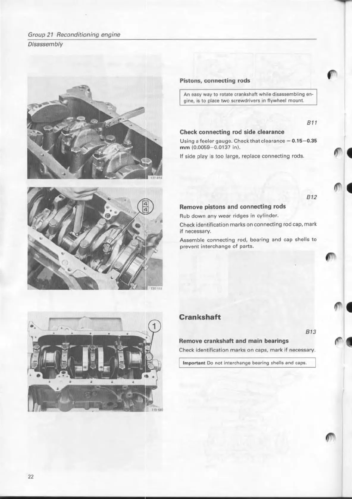 Volvo B 21 - Piston, Connecting Rod, and Crankshaft Disassembly; Crankshaft Removal and Main Bearing Handling