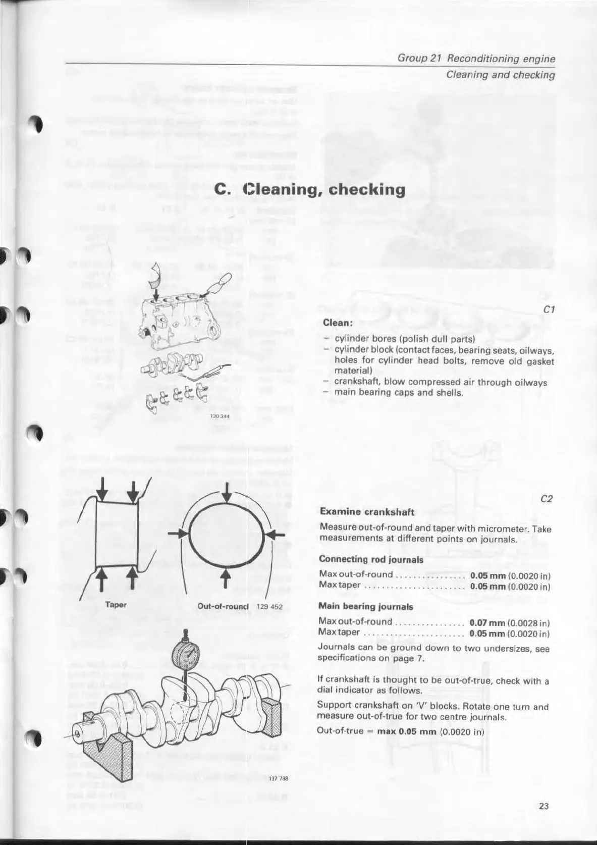 Volvo B 21 - Engine Cleaning and Checking Procedures; Engine Component Cleaning; Crankshaft Examination and Measurement