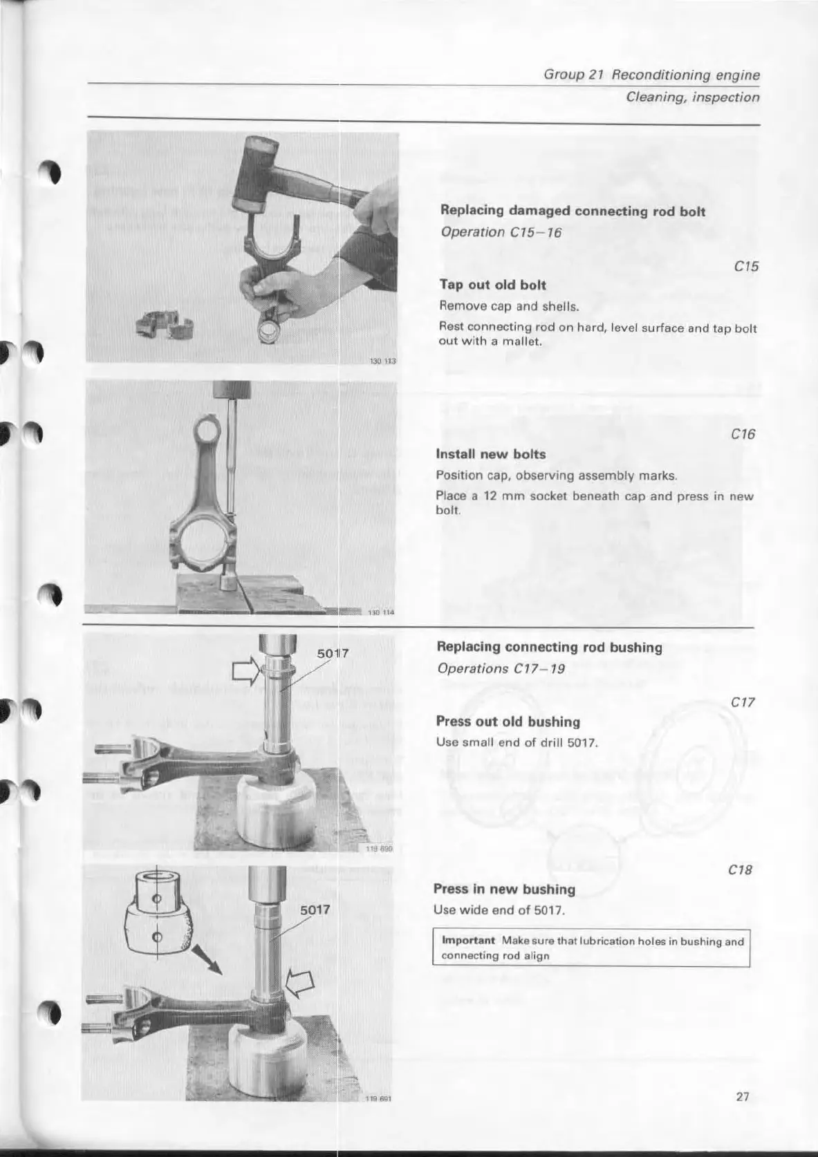 Volvo B 21 - Connecting Rod Bolt Replacement; Connecting Rod Bushing Replacement
