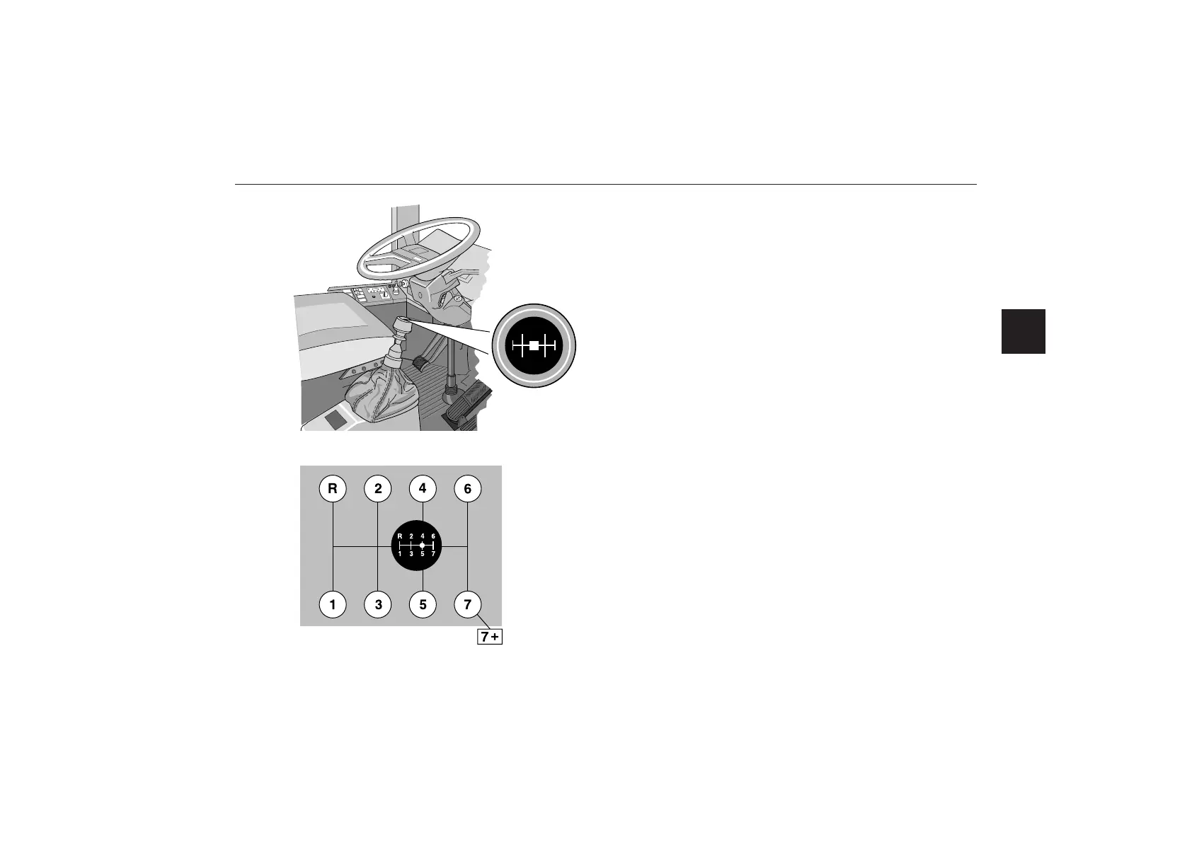 7–7+ Press the button on the lever knob to shift to high-
